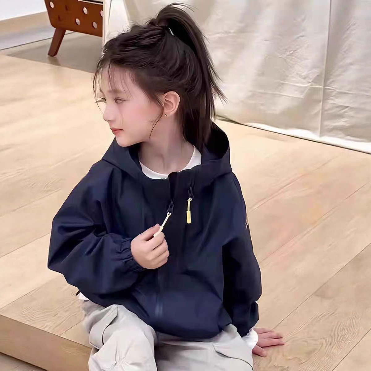 女童冲锋衣春秋款2025新款儿童洋气户外软壳外套休闲宽松连帽上衣