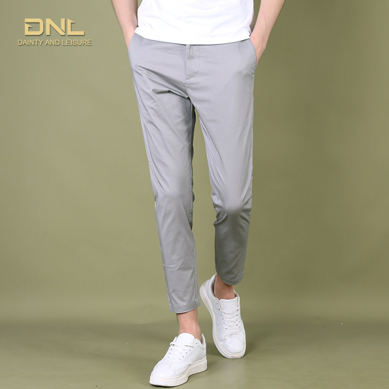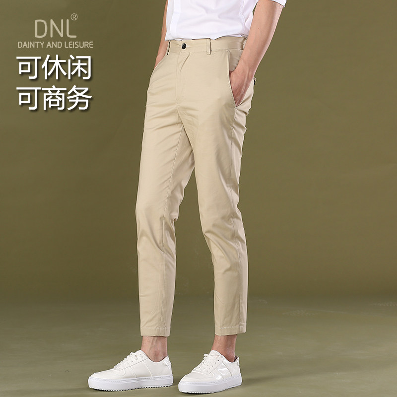 夏季薄款休闲九分裤男修身韩版小脚白色百搭 纯棉弹力9分裤子男潮