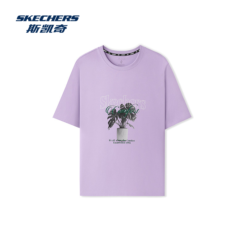 斯凯奇好运龟背竹印花男女短袖