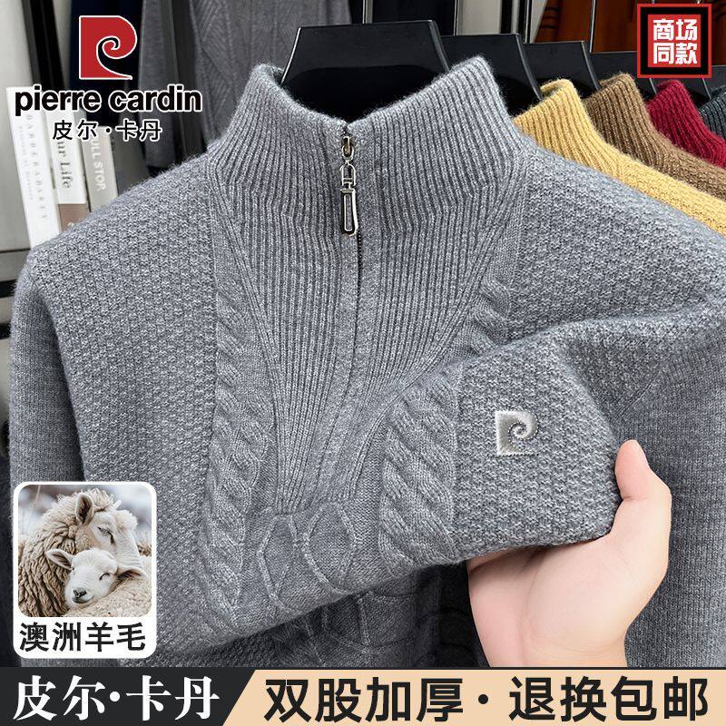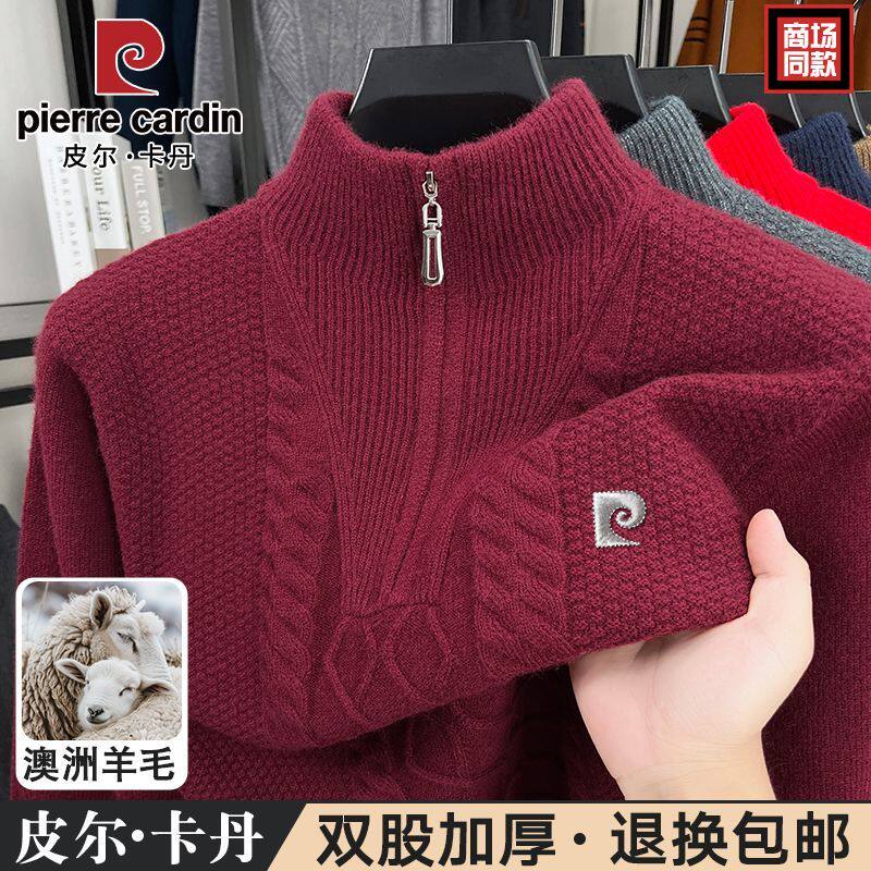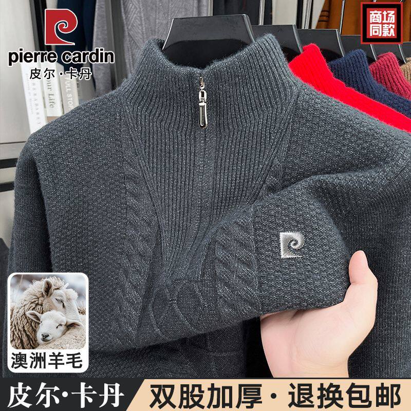 2025皮尔卡丹冬季男士加厚针织衫中年拉链休闲毛衣半高领羊毛衫