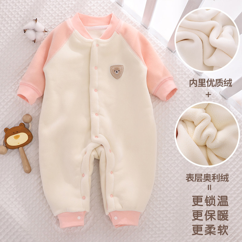 全棉纯棉婴儿冬季加厚连体衣宝宝保暖长袖哈衣儿童加绒加棉衣新生