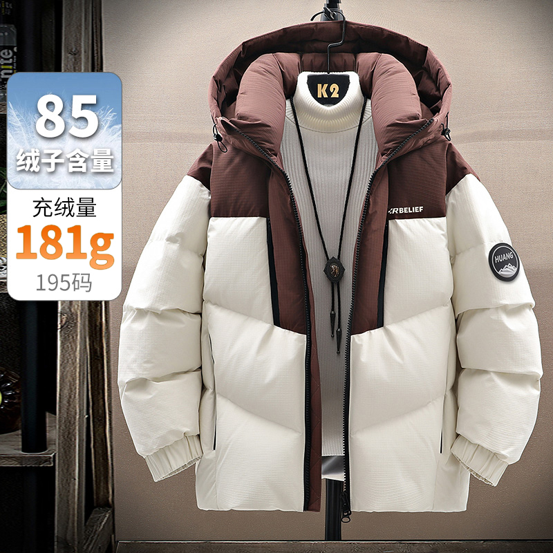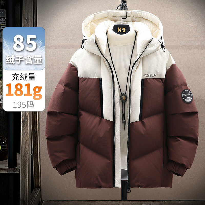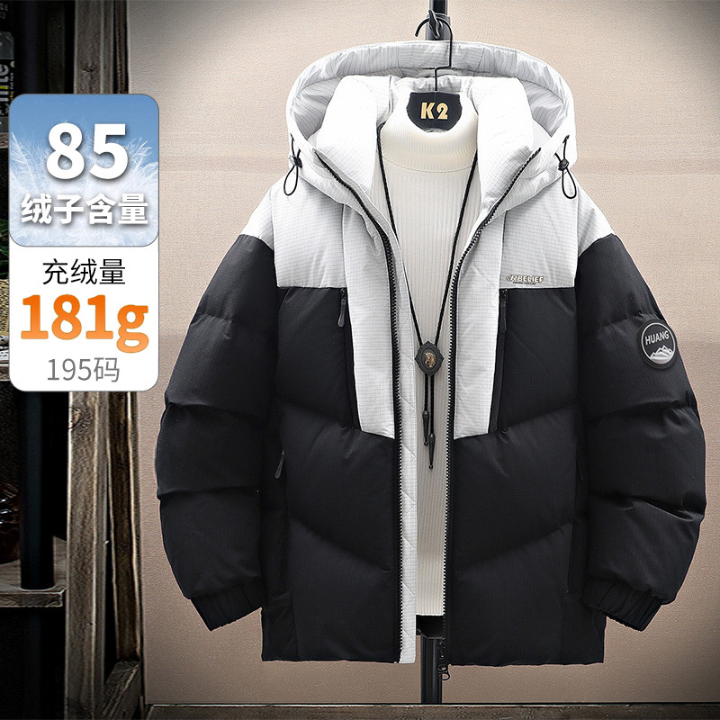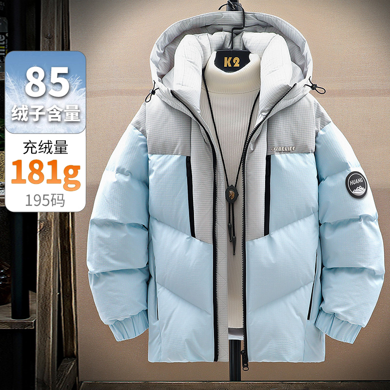 以纯三防羽绒服男款拼色连帽外套