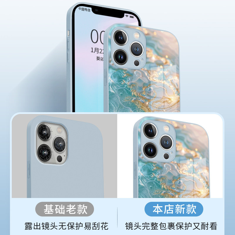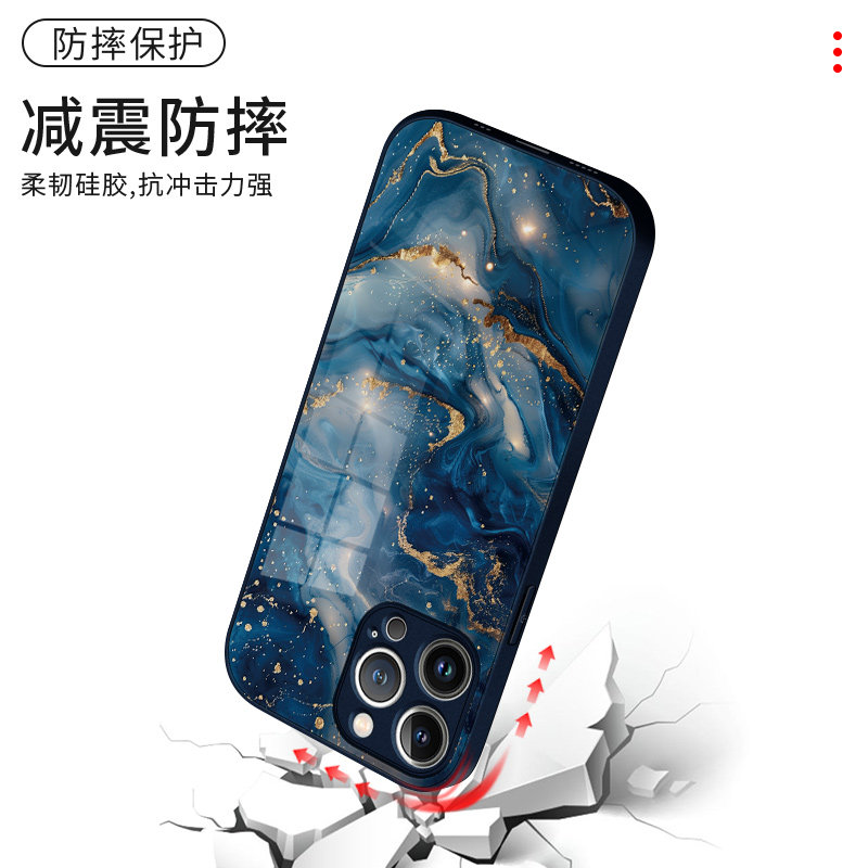 流水生金适用苹果15promax手机壳16新款iPhone14高端13晕染鎏金12小众高级感11玻璃x全包17女xs奢华8plus防摔