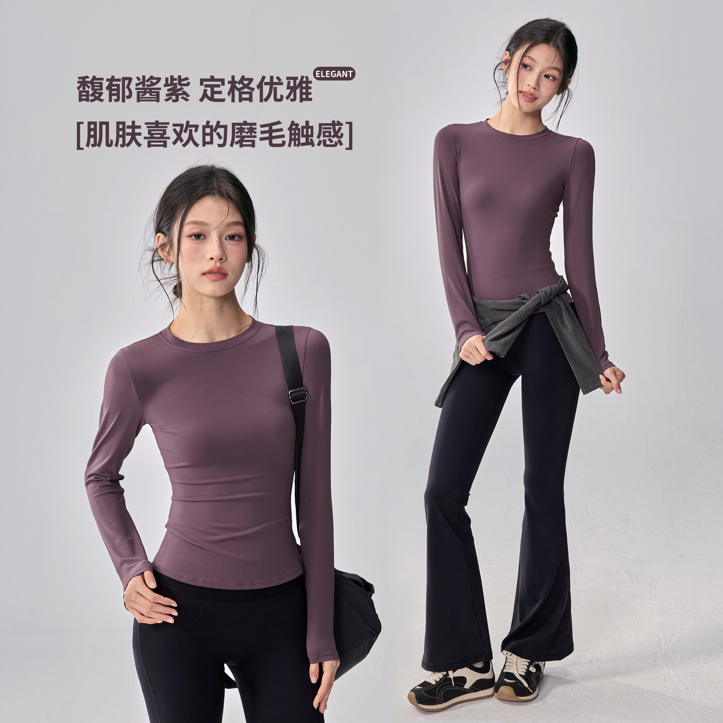健身女孩高弹紧身磨毛瑜伽服长袖