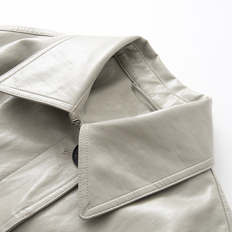 艾诺丝国内代购2026春季新款翻领长款时尚PU皮衣风衣外套BR211120