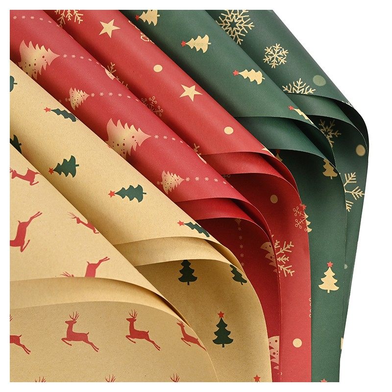 圣诞节礼物包装纸复古雪花耶诞平安夜牛皮纸礼盒大尺寸主题礼品纸