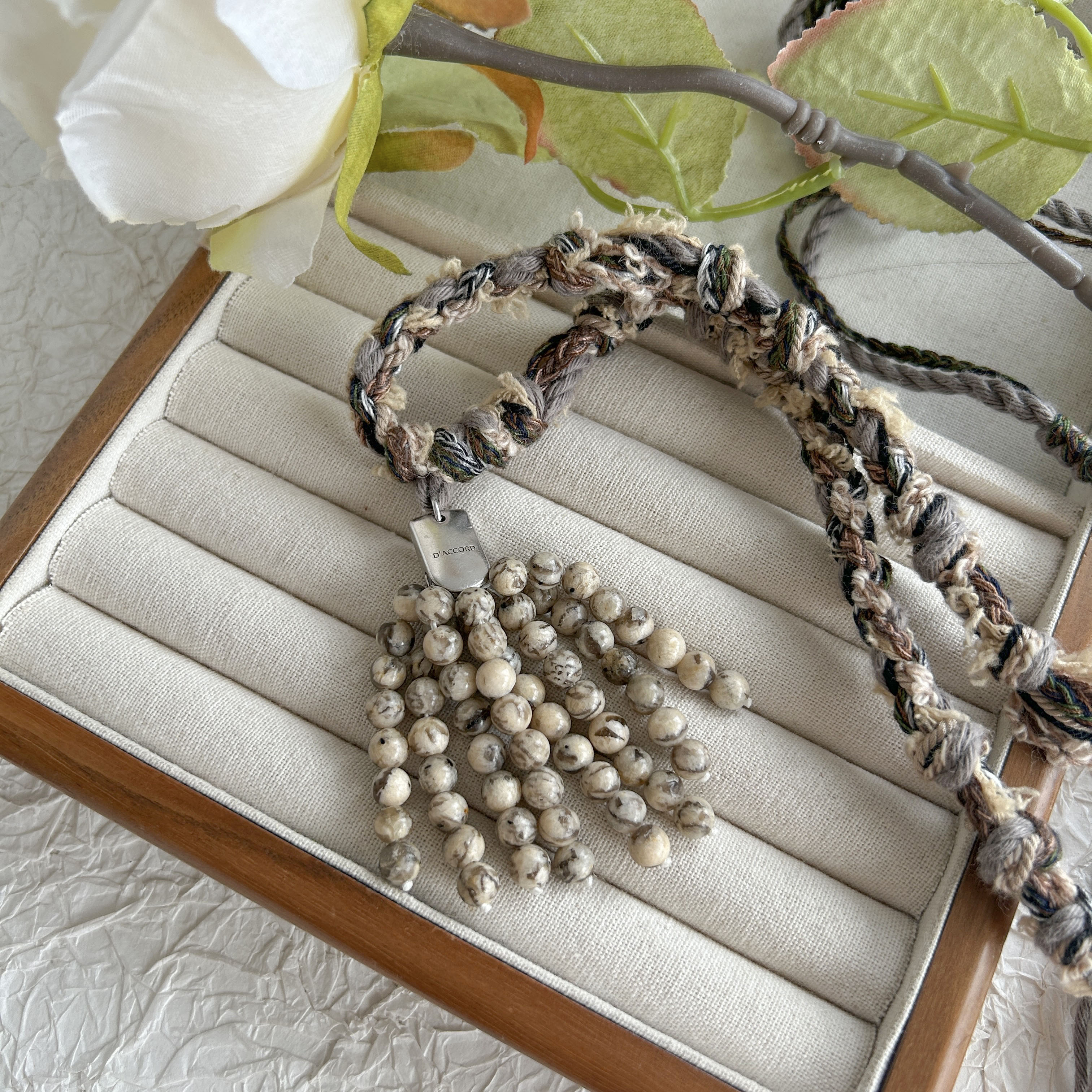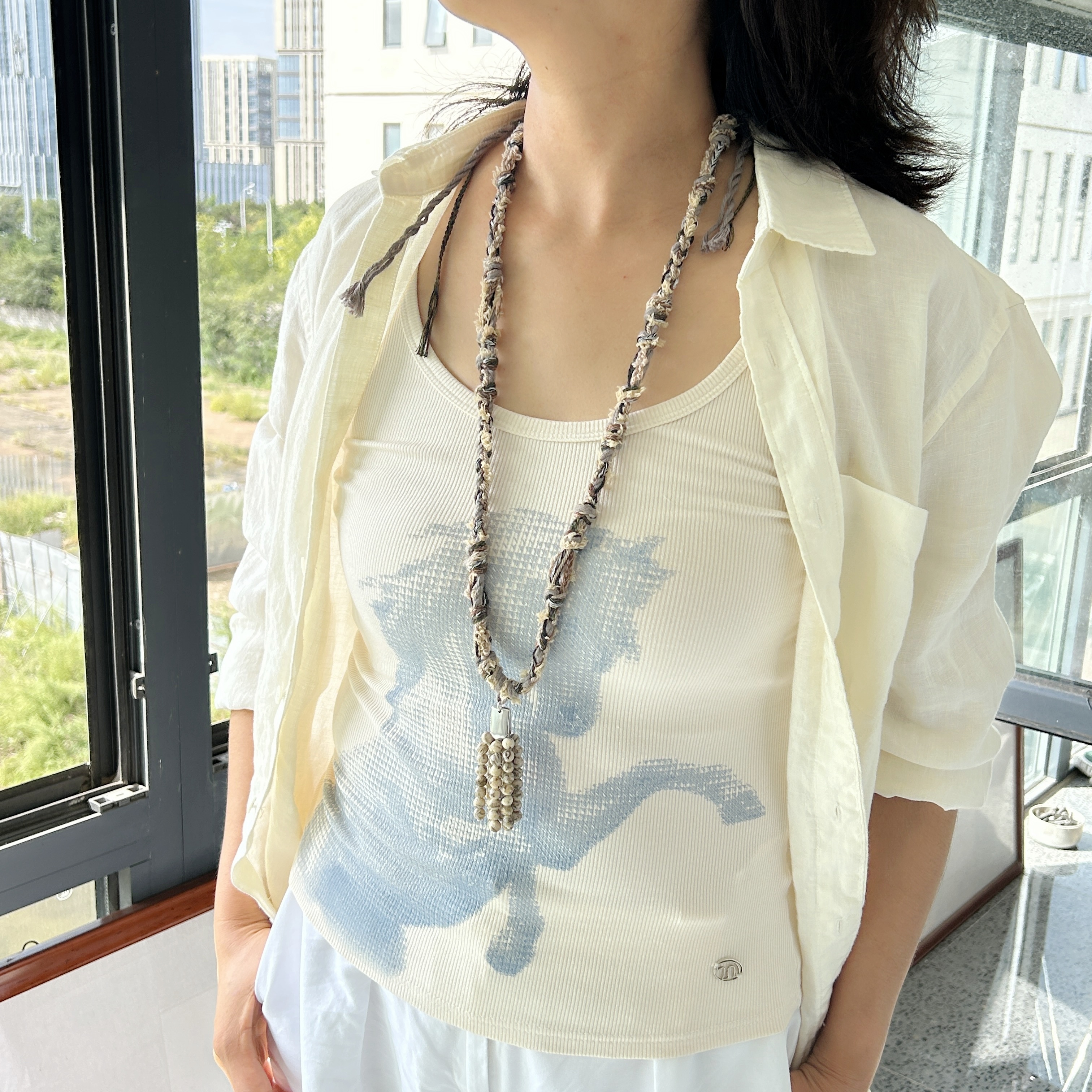 初秋新款麻花绳亚麻粗绳编制链菩提石串珠吊坠项链简约时尚毛衣链