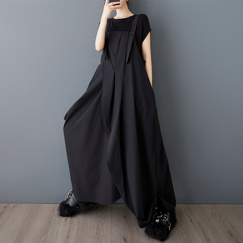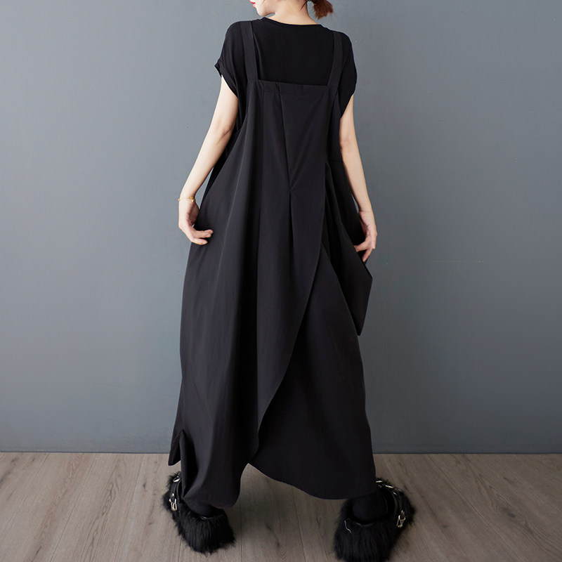 外贸出口小众设计感不规则无袖背带连衣裙宽松时尚休闲百搭背心裙