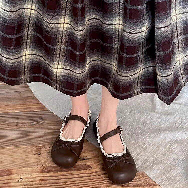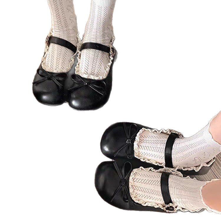 圆头复古蝴蝶结平底小皮鞋女2026新款春秋配裙子法式软底玛丽珍鞋