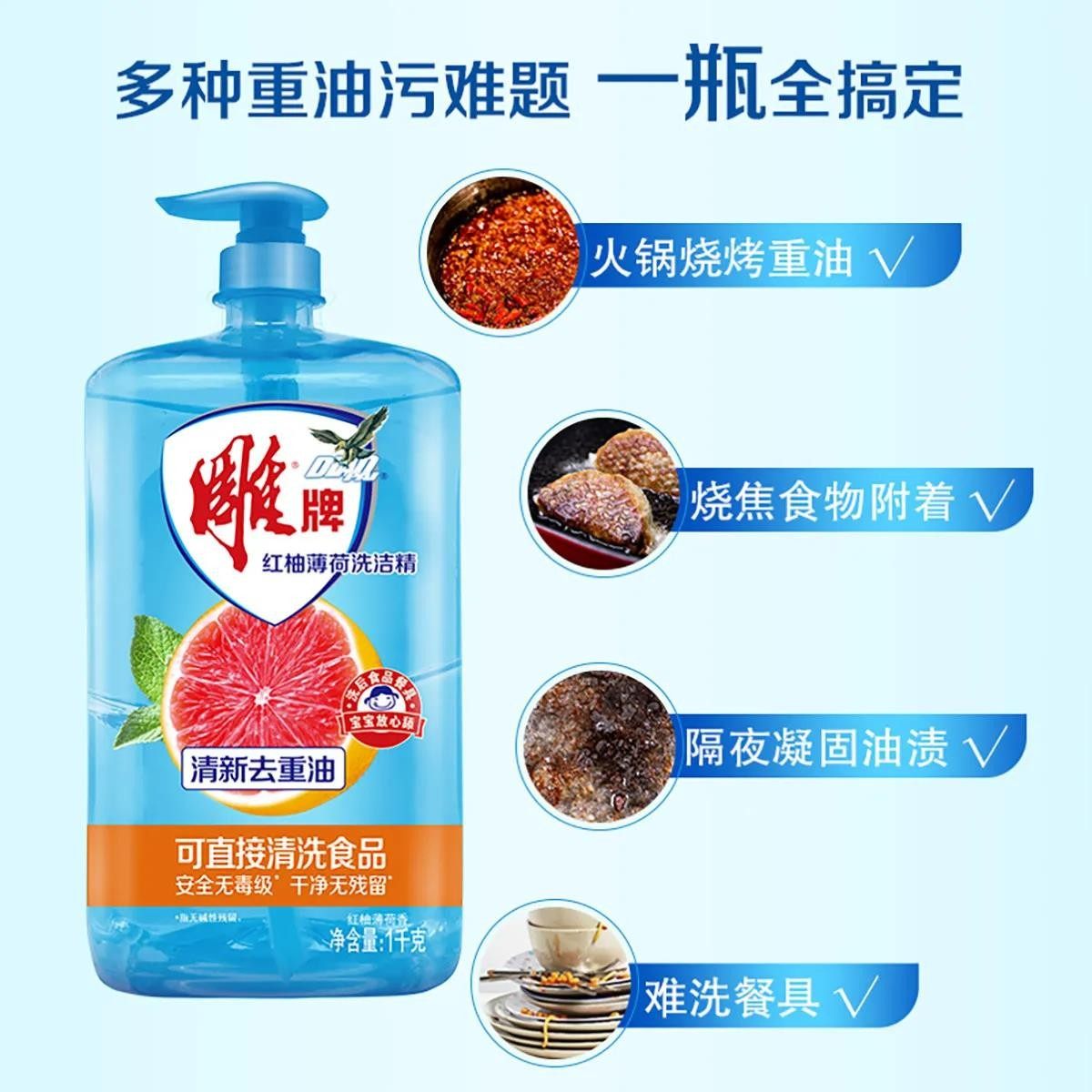 雕牌洗洁精家用厨房宿舍家庭洗涤灵实惠旅行装果蔬餐具去油洗碗液