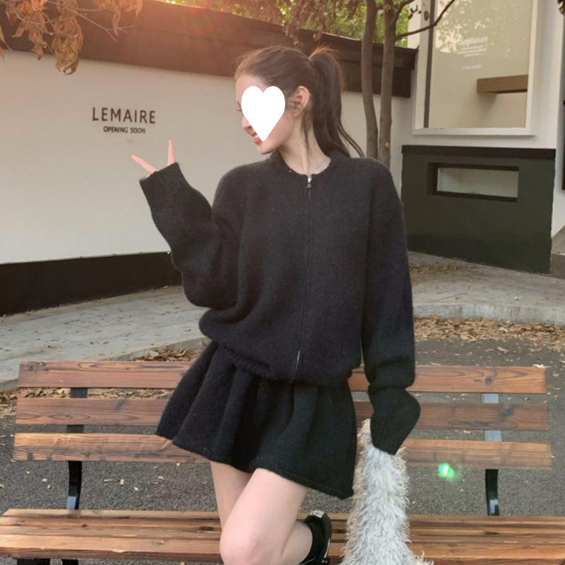 韩系针织毛衣套装女小个子秋冬季开衫上衣半身裙两件套