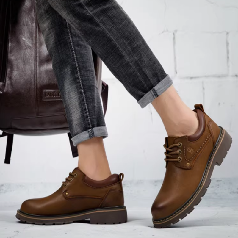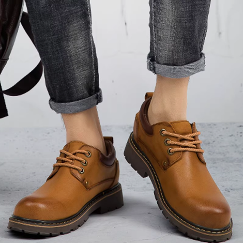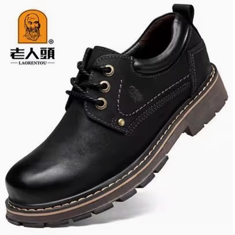 老人头男鞋2025冬季新款休闲马丁鞋真皮软底工装大头加绒保暖棉鞋