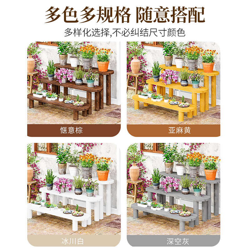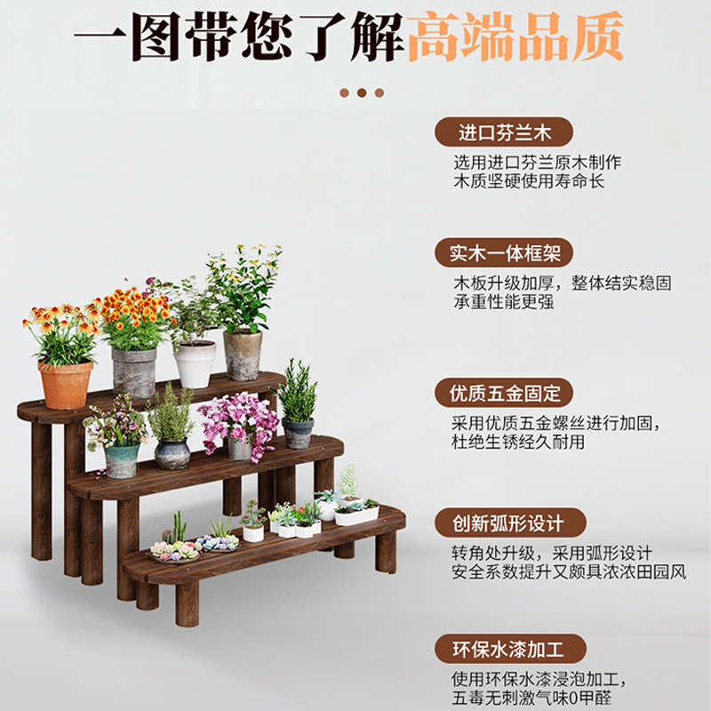 阳台防腐实木摆花架子落地式阶梯式户外靠墙多肉台阶花盆架置物架