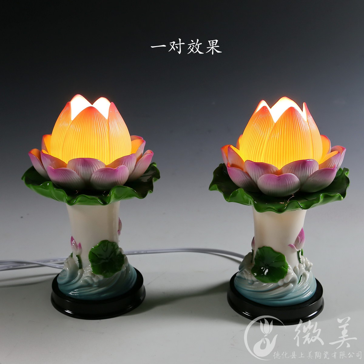 微美高脚LED莲花灯佛前长明灯供佛灯佛堂供灯具陶瓷荷花灯摆件