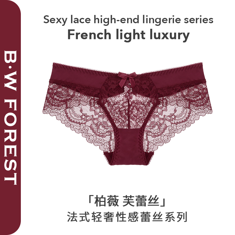 BW法式浪漫蕾丝内裤女性感新款纯棉裆透气中腰无痕冰丝缎面夏季薄