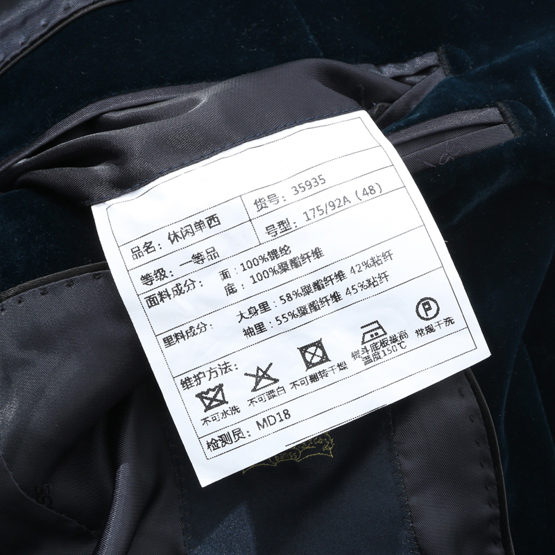 AB1124邦纳断码清仓春秋款男士商务休闲藏青色金丝绒一粒扣单西服