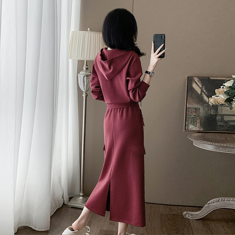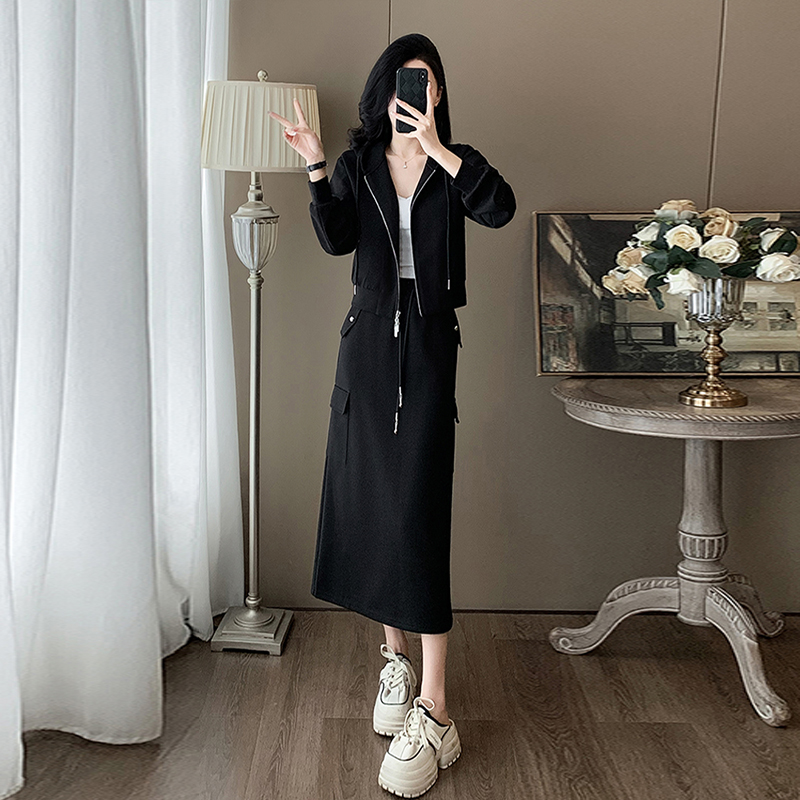 高级感休闲运动套装女春秋季连帽卫衣工装半身套裙减龄穿搭一整套