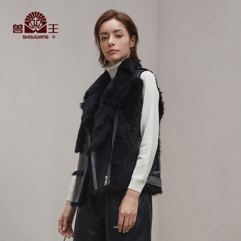 兽王秋冬新款绵羊皮真皮皮衣马甲女装貉子毛领海宁中长款皮草大衣