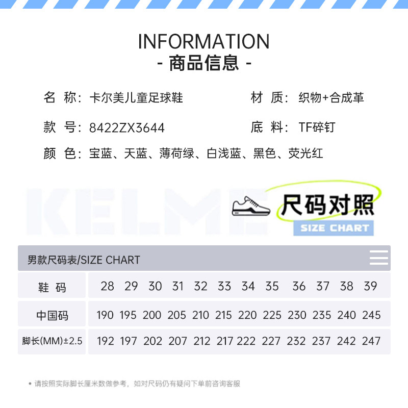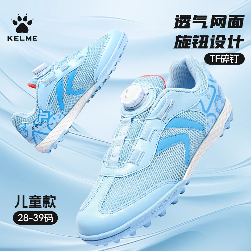 卡尔美儿童足球鞋男童旋钮TF碎钉训练鞋小学生女专业比赛网面透气