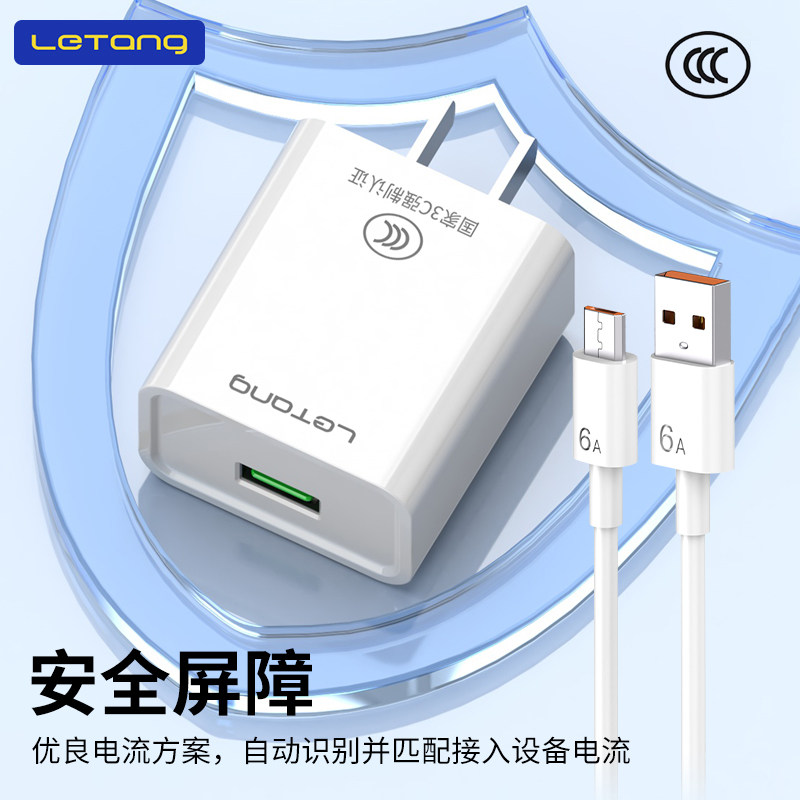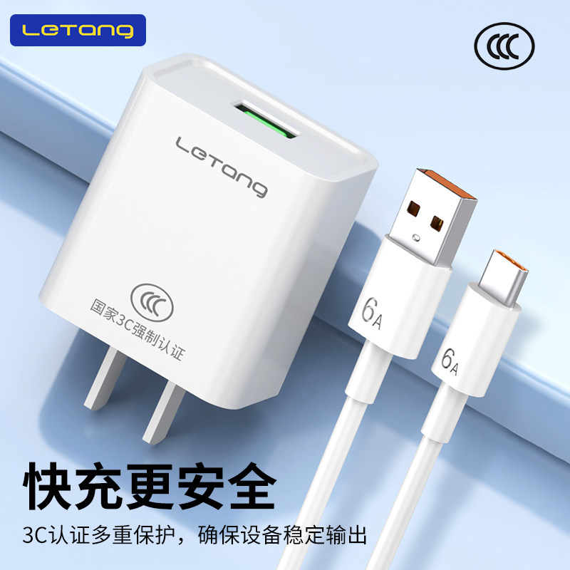 乐糖国标7号3C认证手机电源适配器大功率66W快充安卓Type-C通用超级闪充智能USB-C接口车载充电器套装批.发
