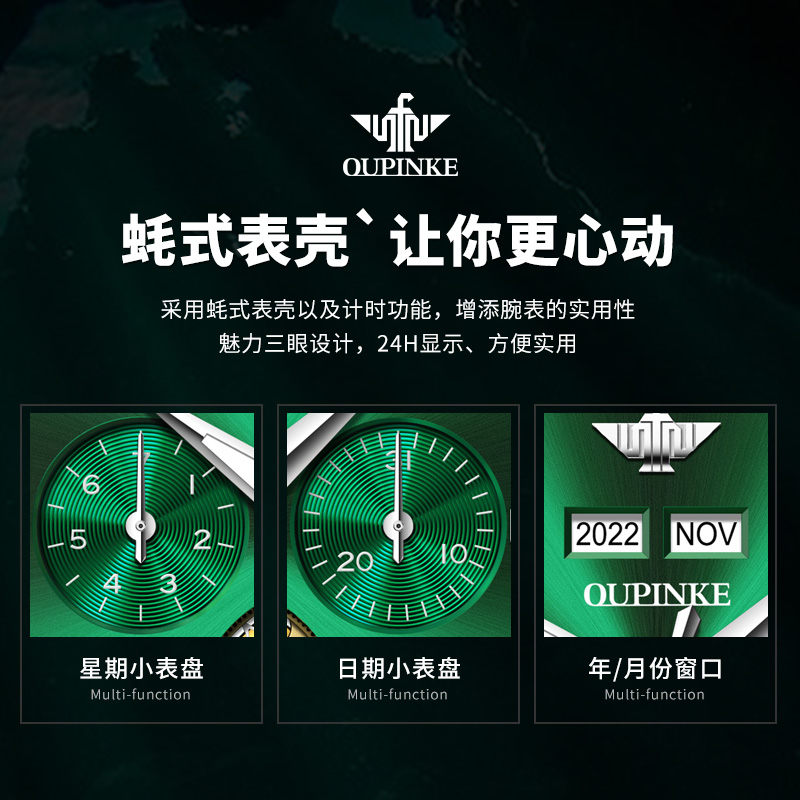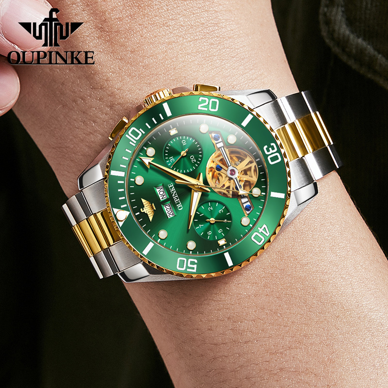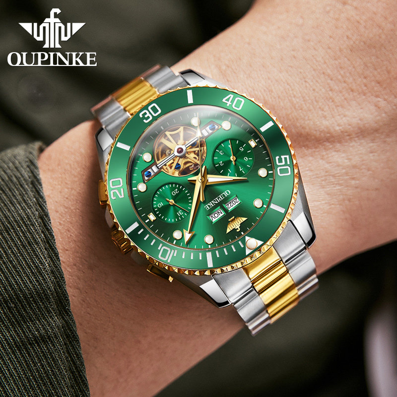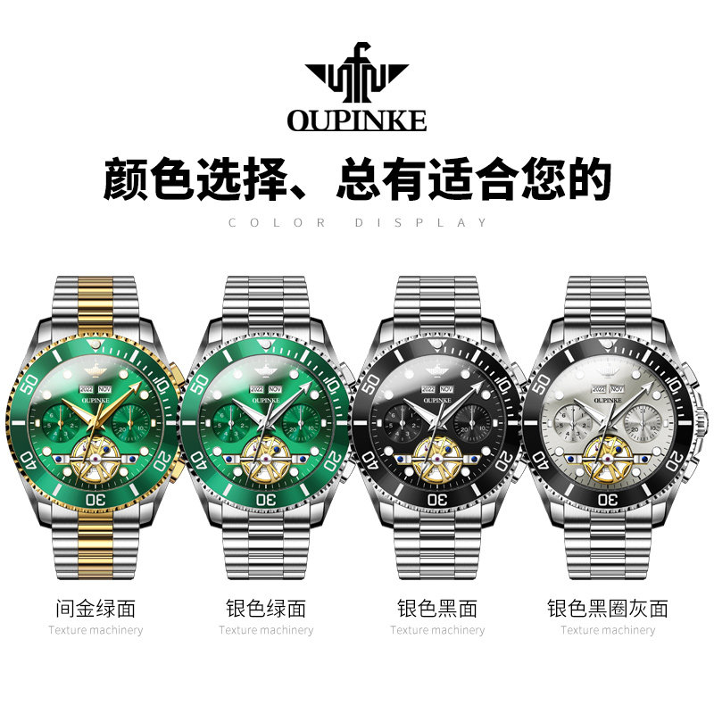 瑞士正品牌绿水鬼男士手表男款镂空陀飞轮防水全自动机械名表十大