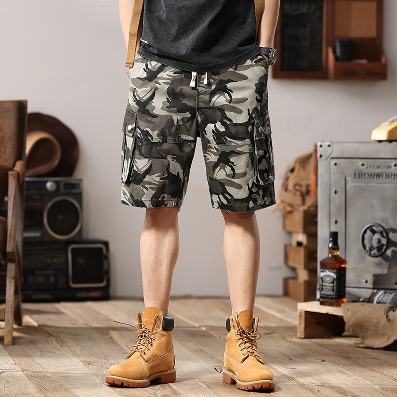 薄款多口袋弹力纯棉休闲短裤男胖子迷彩加肥加大码工装五分裤中裤