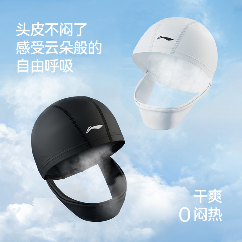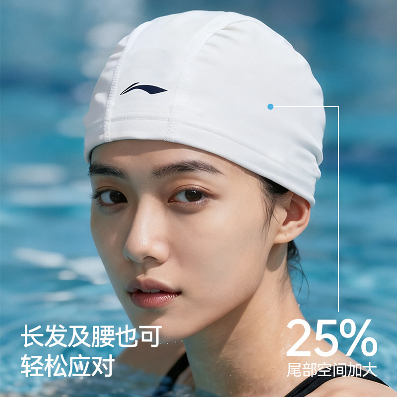 李宁泳帽女款长发加大防水不勒头布料发带游泳帽成人大头围高颜值