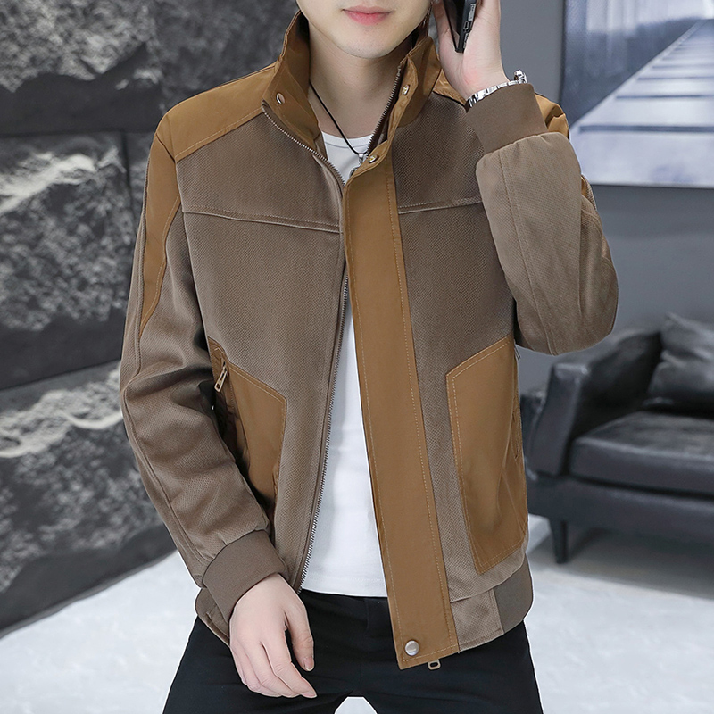 立领外套男2024春季新款韩版修身休闲高端潮牌拼接男士夹克上衣帅