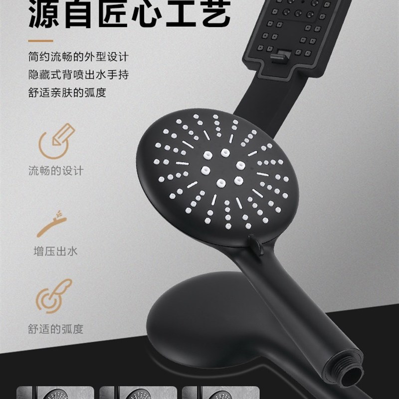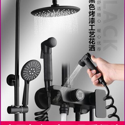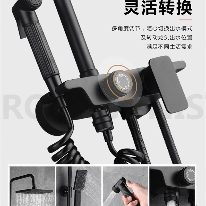 全铜龙头黑色淋浴花洒套装美式家用挂墙式沐浴器圆方形顶喷头套装