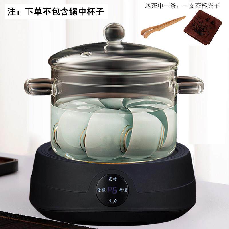 茶杯消毒锅全玻璃耐高温大容量大号茶洗可明火加热炖锅黑晶炉专用