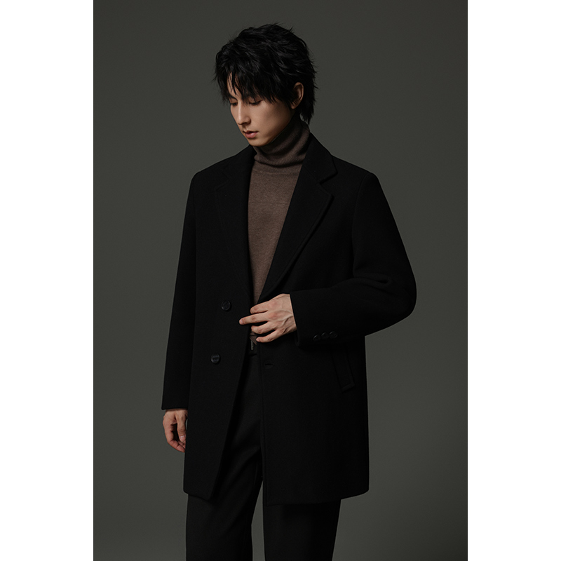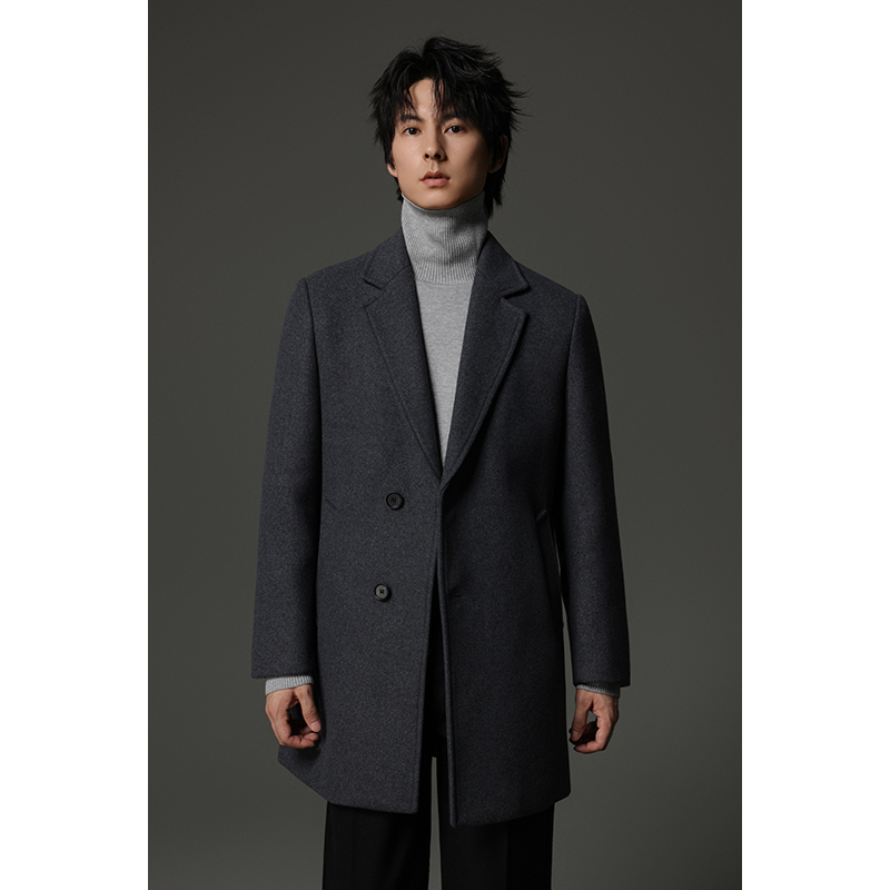 宽松保暖重磅加厚羊毛呢子大衣男中长款垫肩冬季微宽松休闲外套