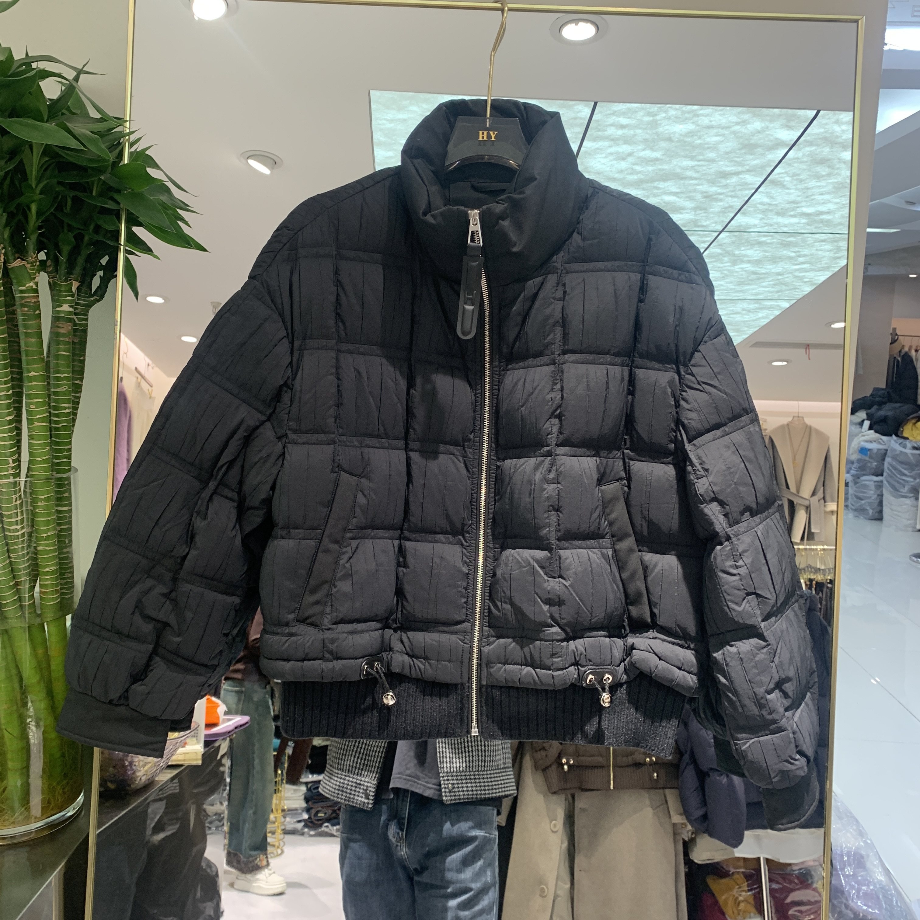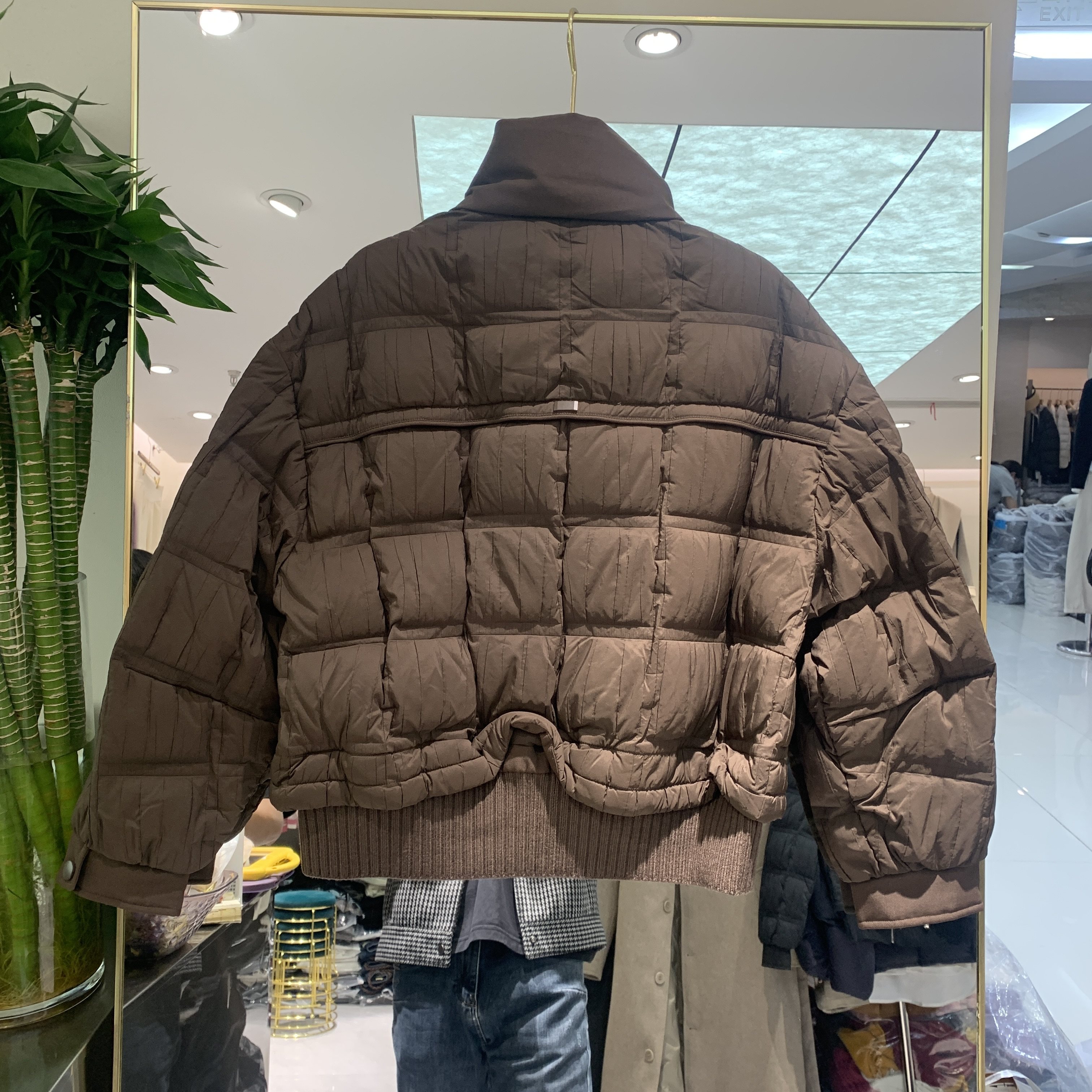 欧洲站2025冬季新款立领针织拼接下摆时尚宽松保暖短款鹅绒服外套