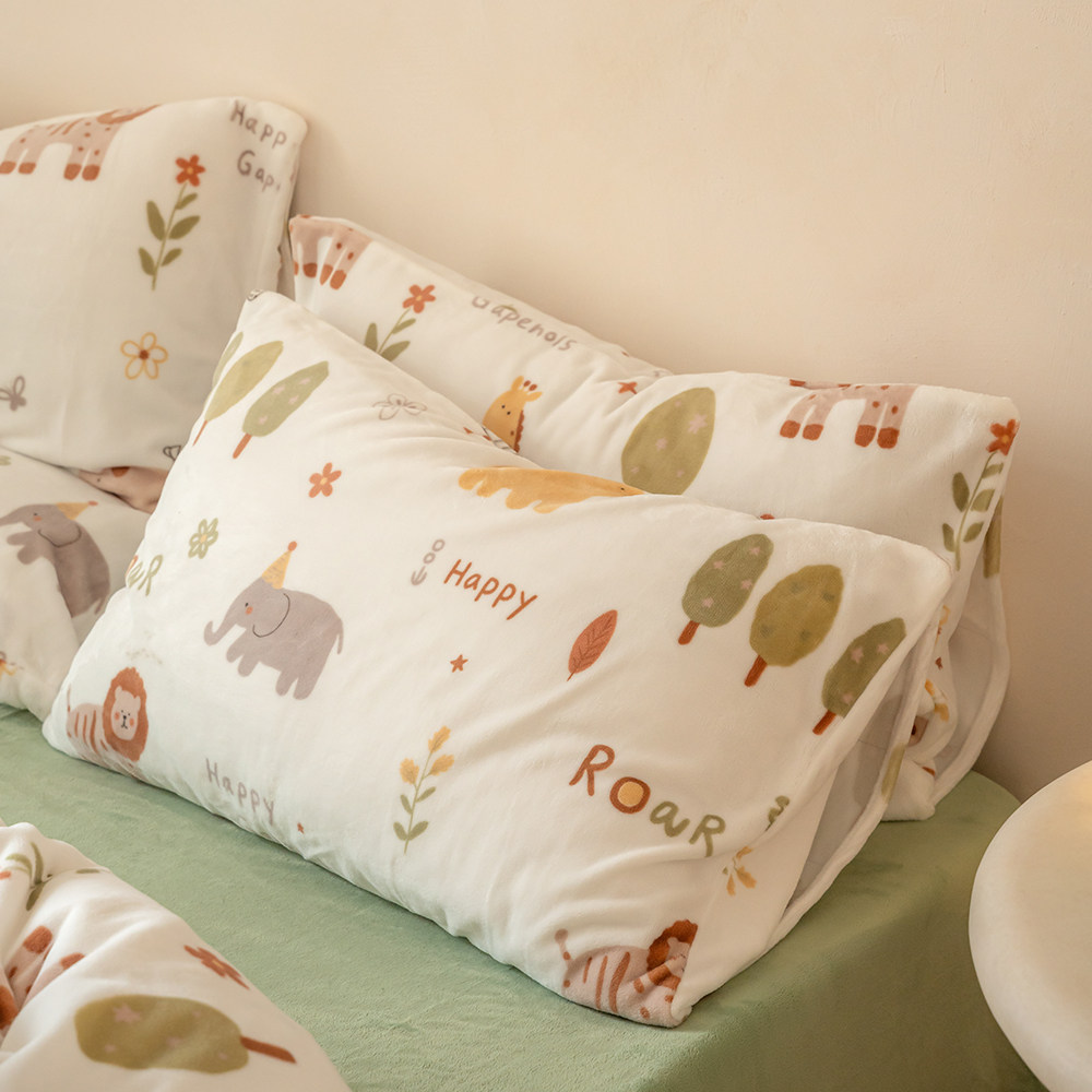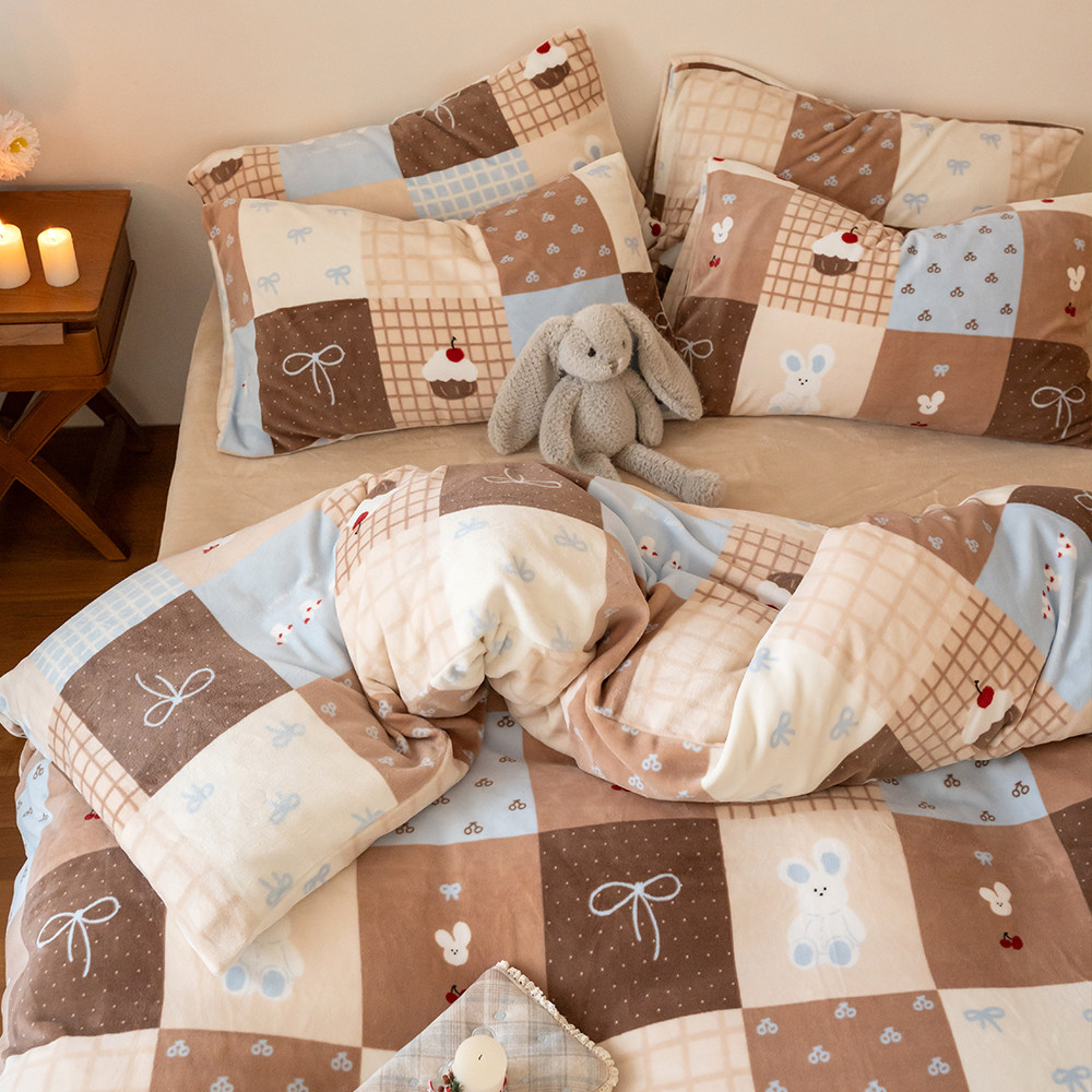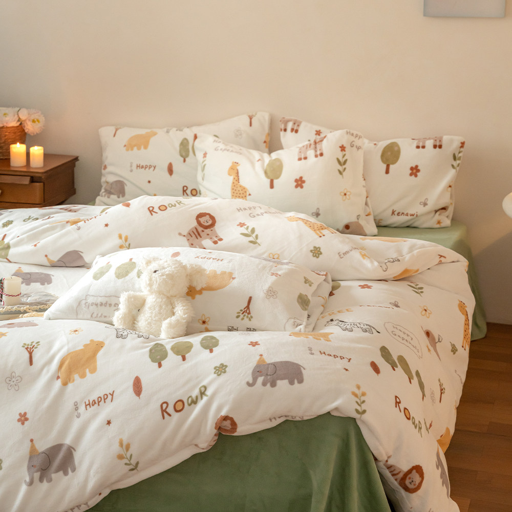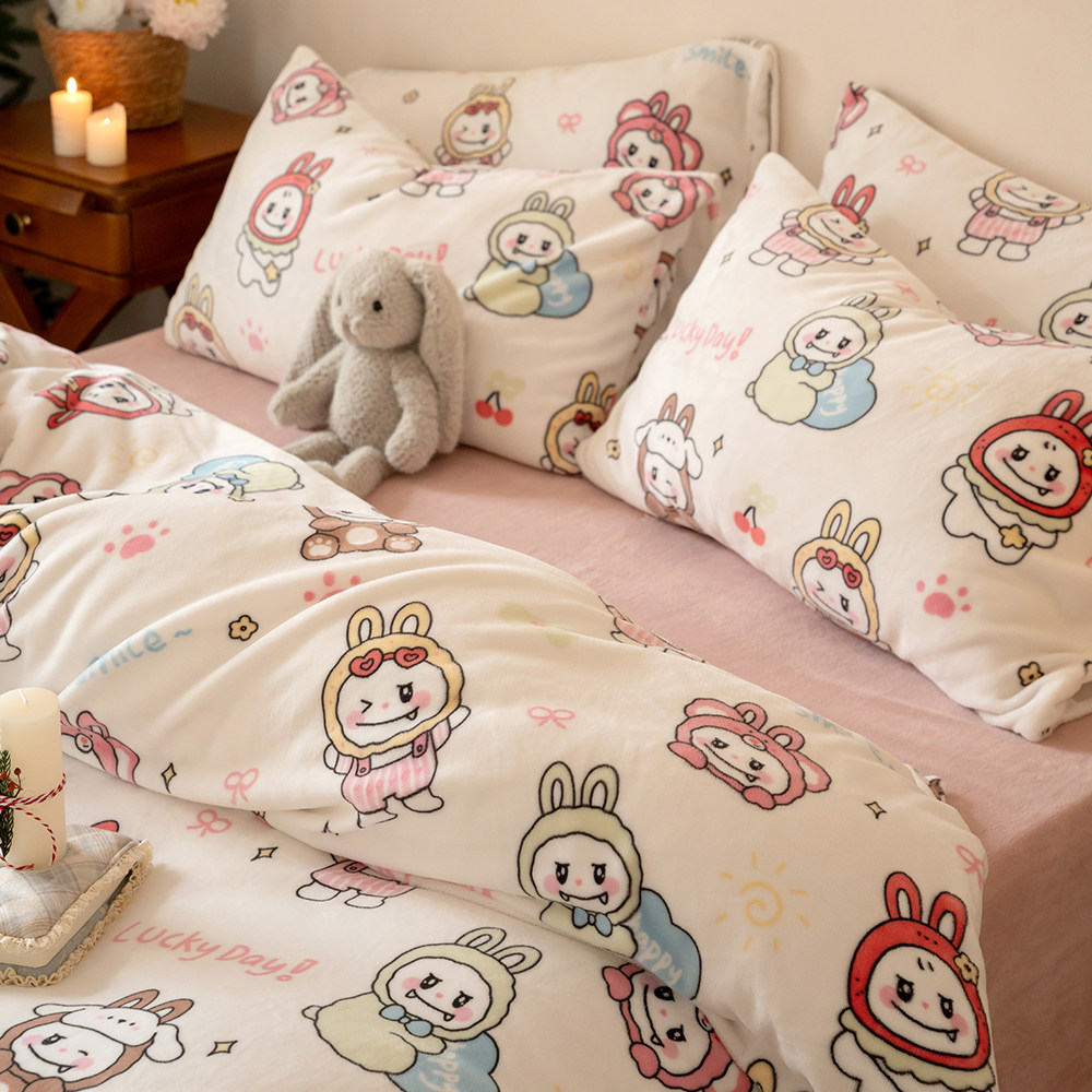 冬季加厚牛奶绒印花四件套可爱