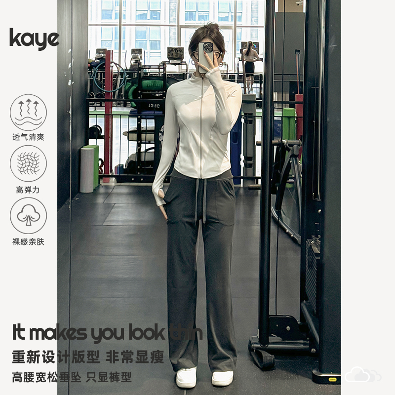 高腰阔腿裤宽松直筒瑜伽健身裤女夏季2025新款羽毛球运动长裤套装