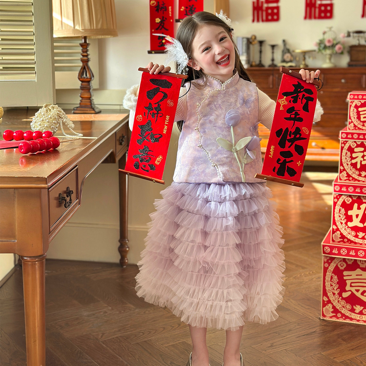 栀了成长记女童冬季国风夹棉马甲