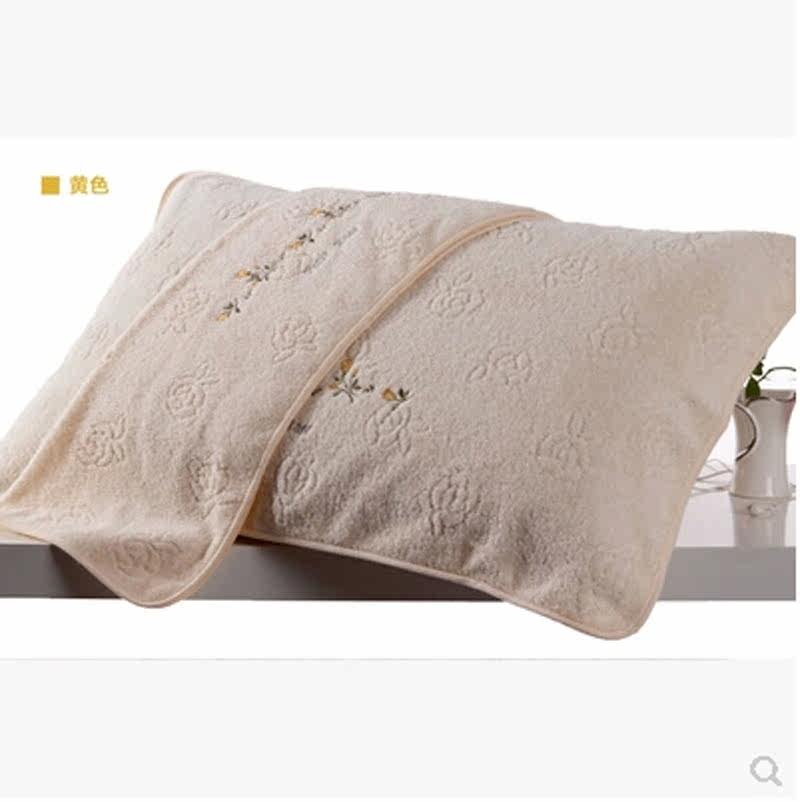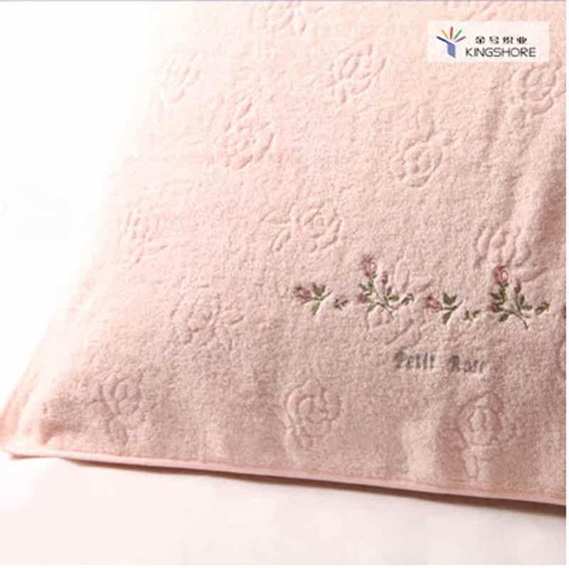 金号枕巾正品 纯棉雅致素色螺旋提缎绣花 厚实大方4201H