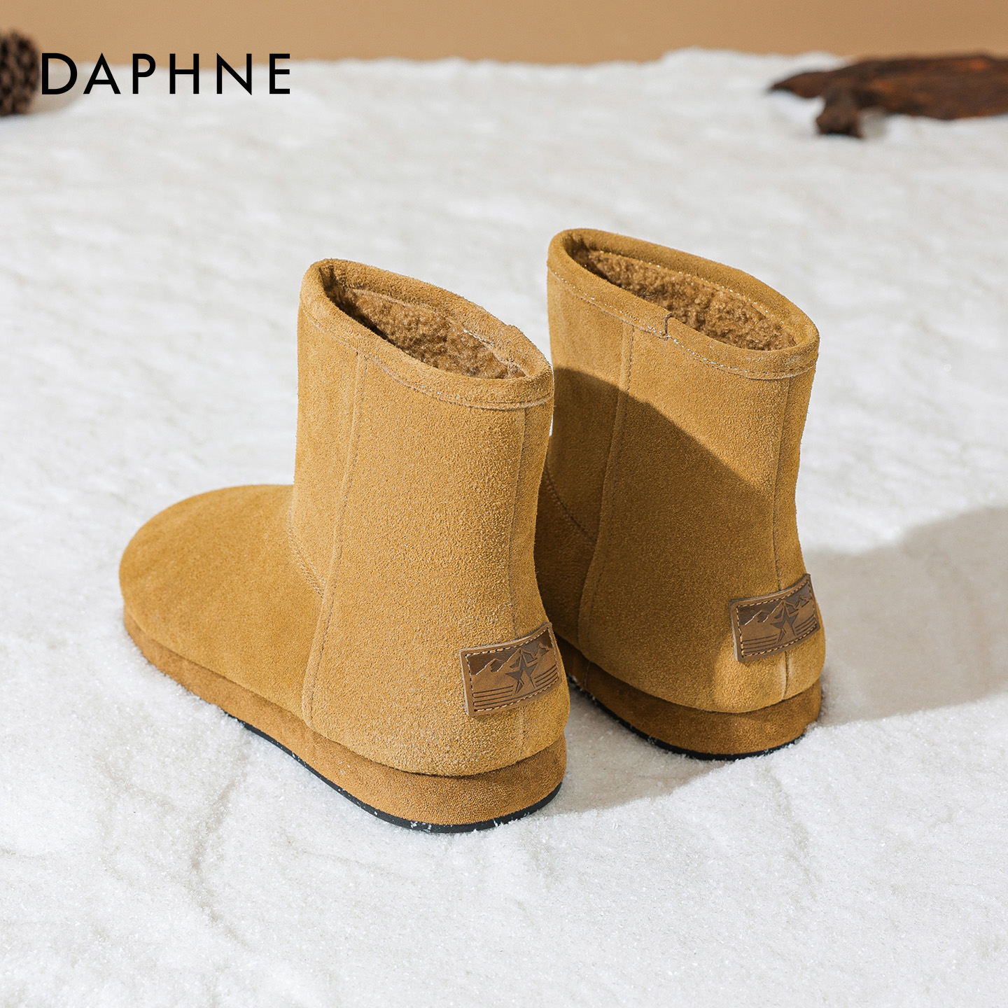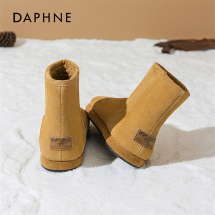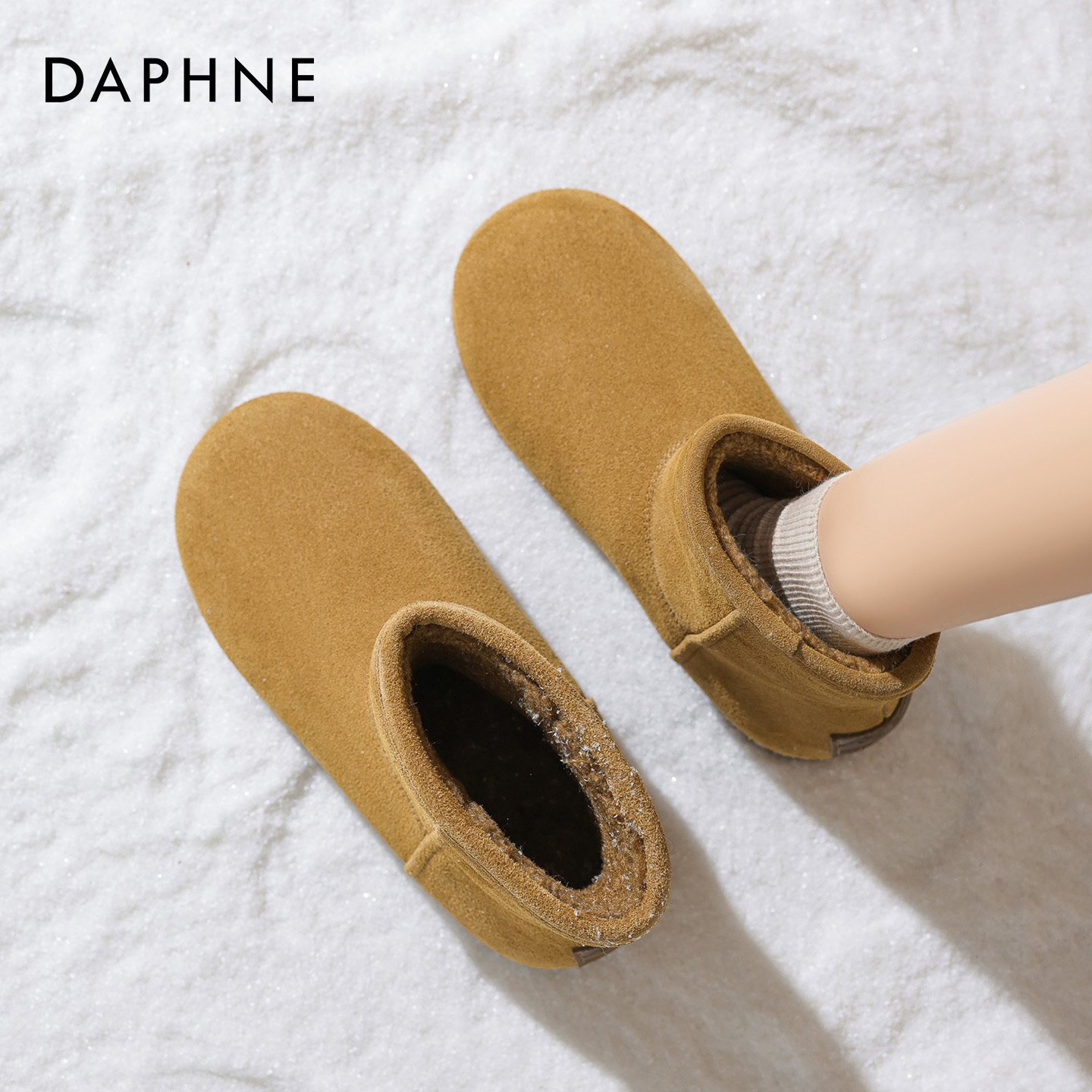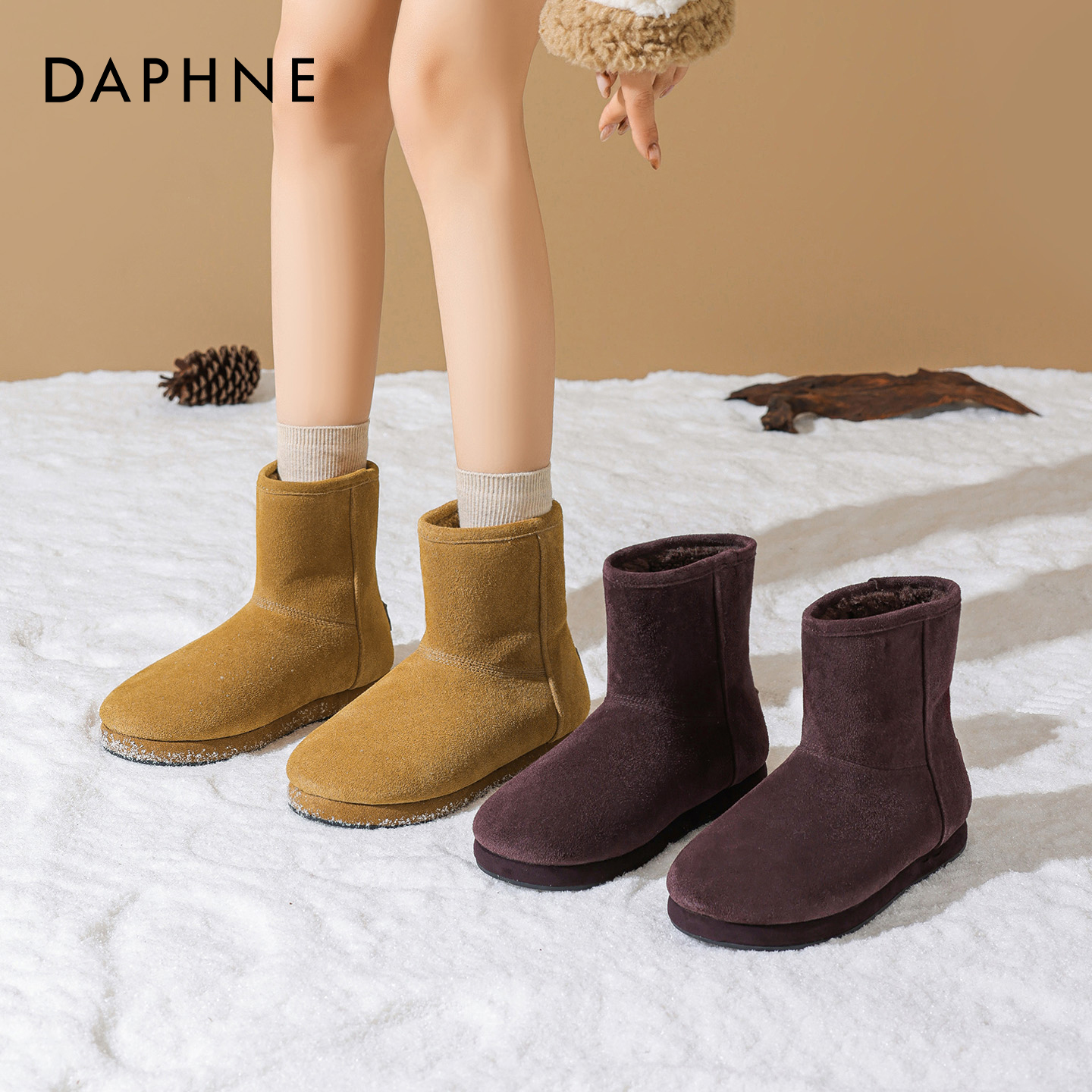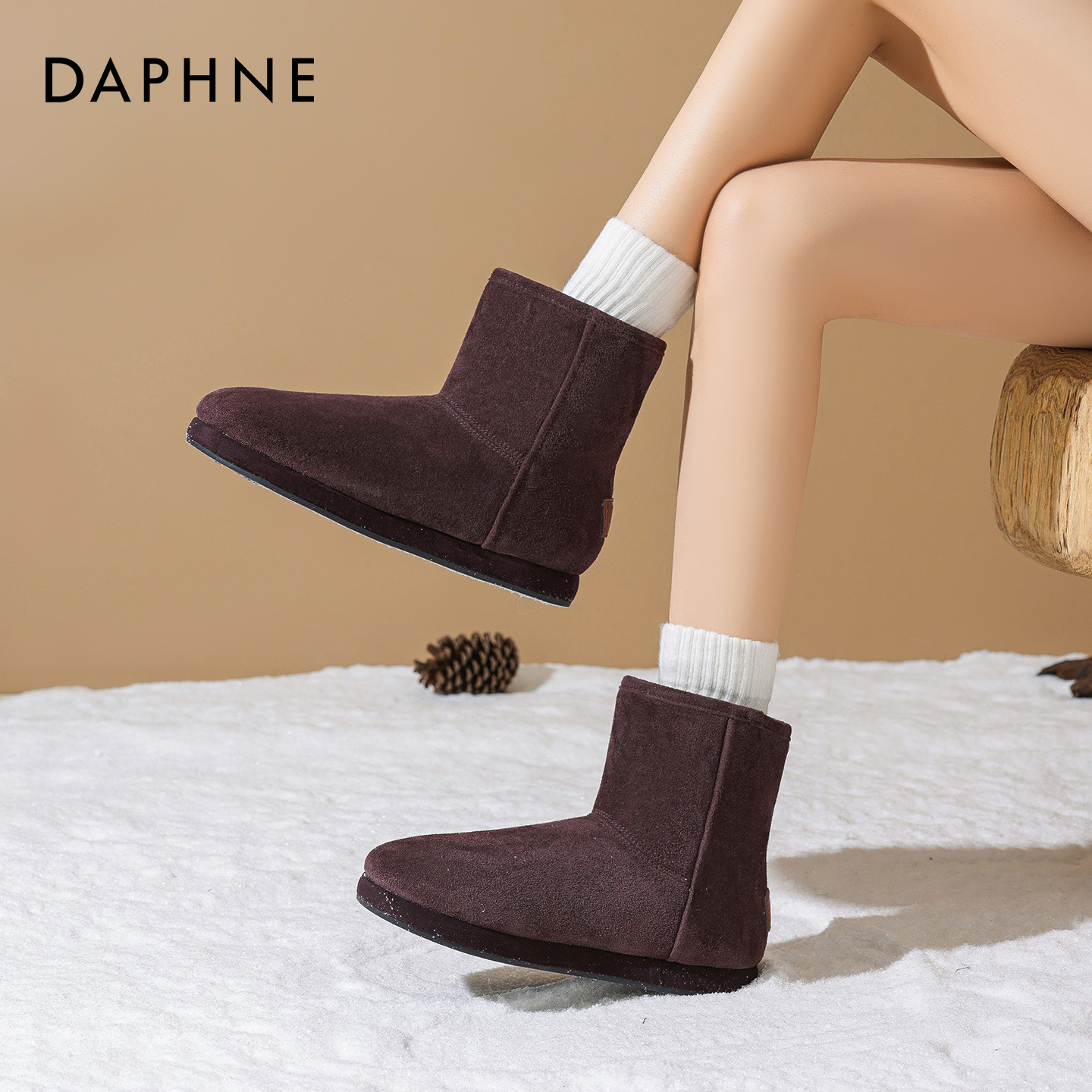 达芙妮加绒雪地靴女冬季2025新款休闲面包棉鞋子复古防滑勃肯短靴