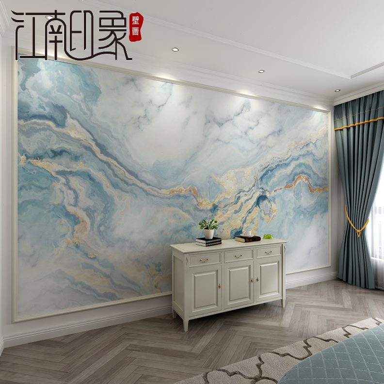 影视壁画卧室纹流彩电视背景墙壁纸简约大理石金新中式墙溢客厅