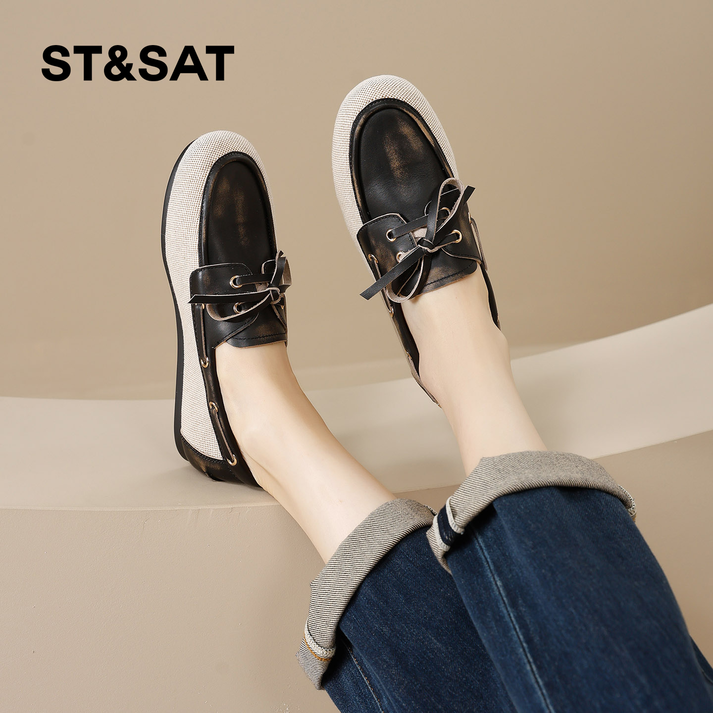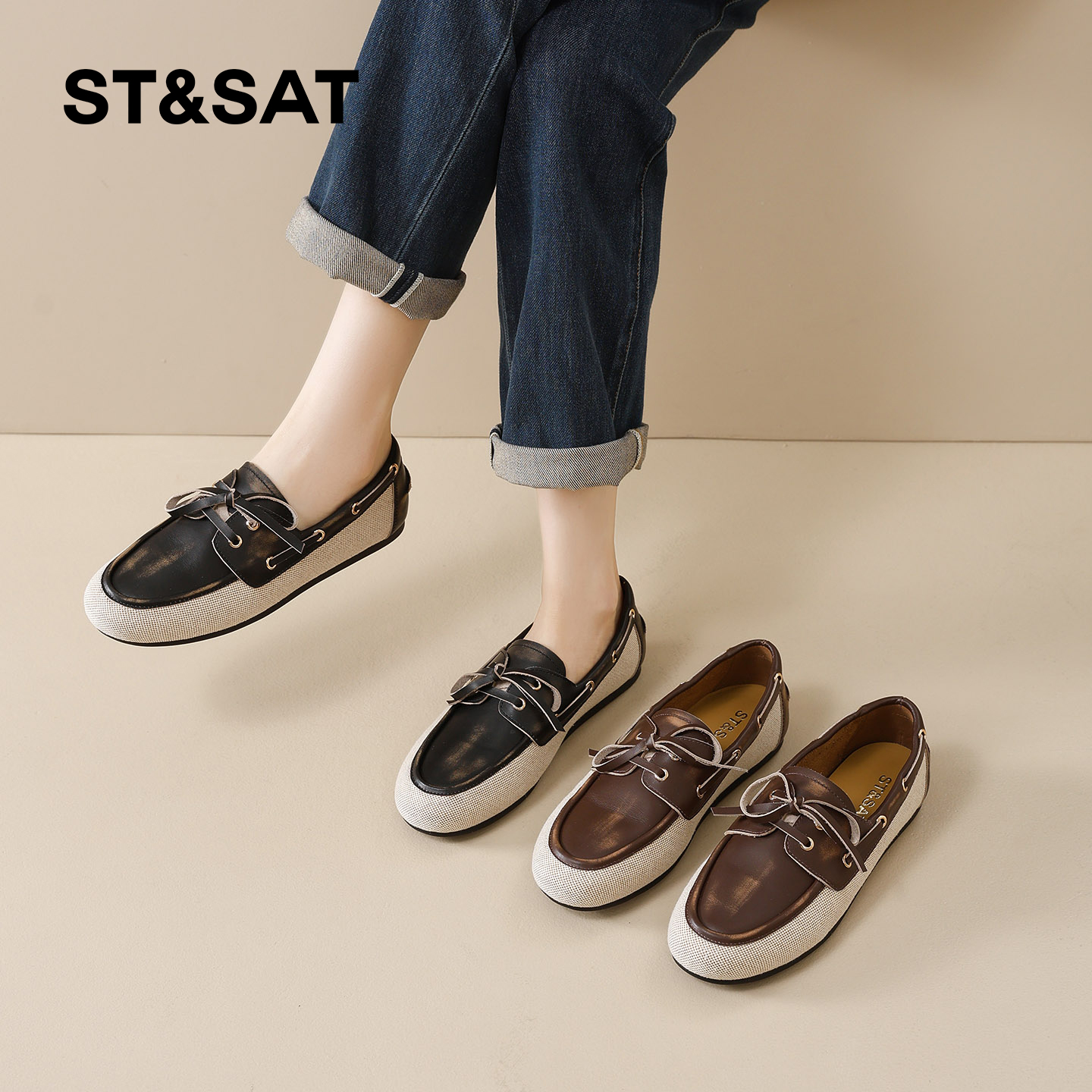 星期六乐福鞋女2025秋季新款女鞋女款爆款鞋子真皮平底单鞋小皮鞋