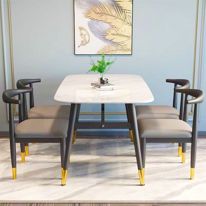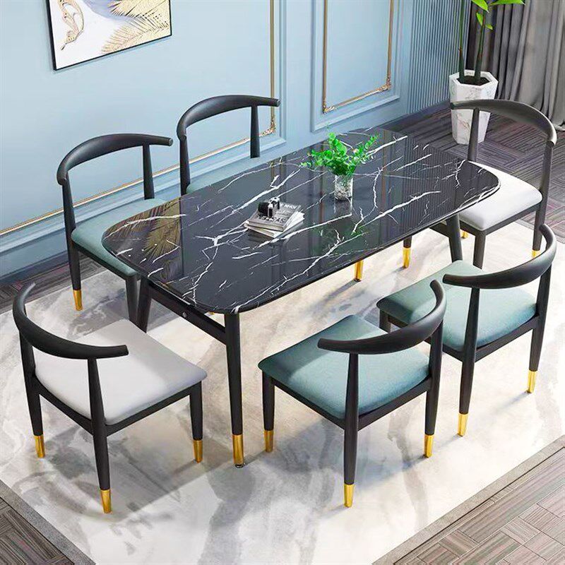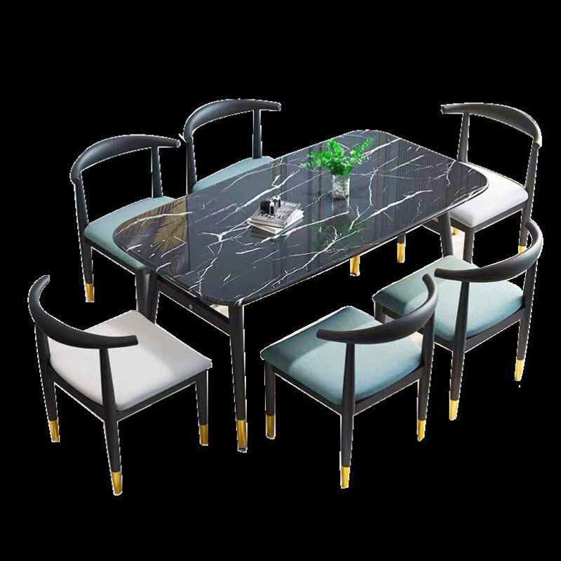 餐桌家用小户型现代简约吃饭桌子长E方形仿大理石商用餐桌椅组合
