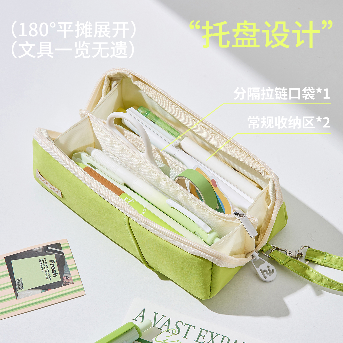 三年二班×嗨士袋 菱形大开口笔袋2026年新款女生大容量文具袋初中生专用文具盒男孩款简约铅笔袋小学生多层