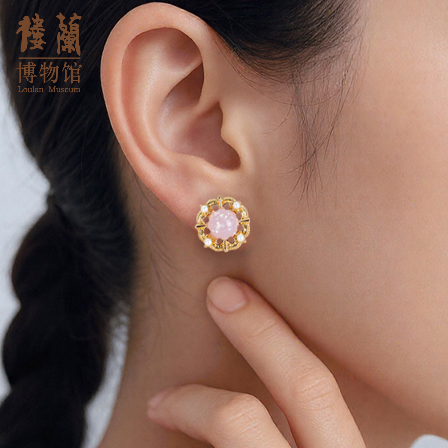 楼兰博物馆星语珍珠树脂S925银针耳钉复古优雅轻奢气质圆形耳饰