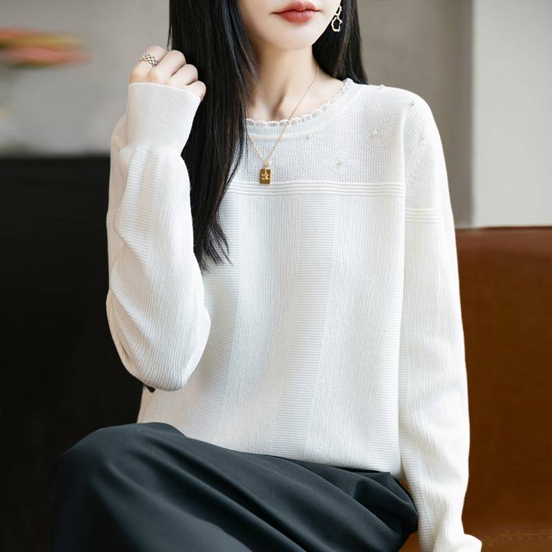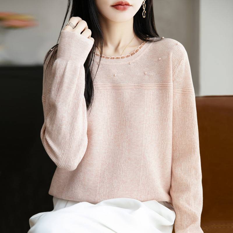 早秋蕾丝钉珠针织打底衫女2025新款春秋内搭上衣洋气大码女装毛衣