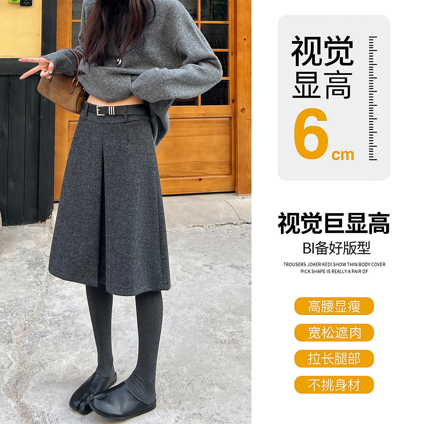 深灰色压褶毛呢半身裙女秋冬季高腰包臀五分裙小个子A字呢子短裙
