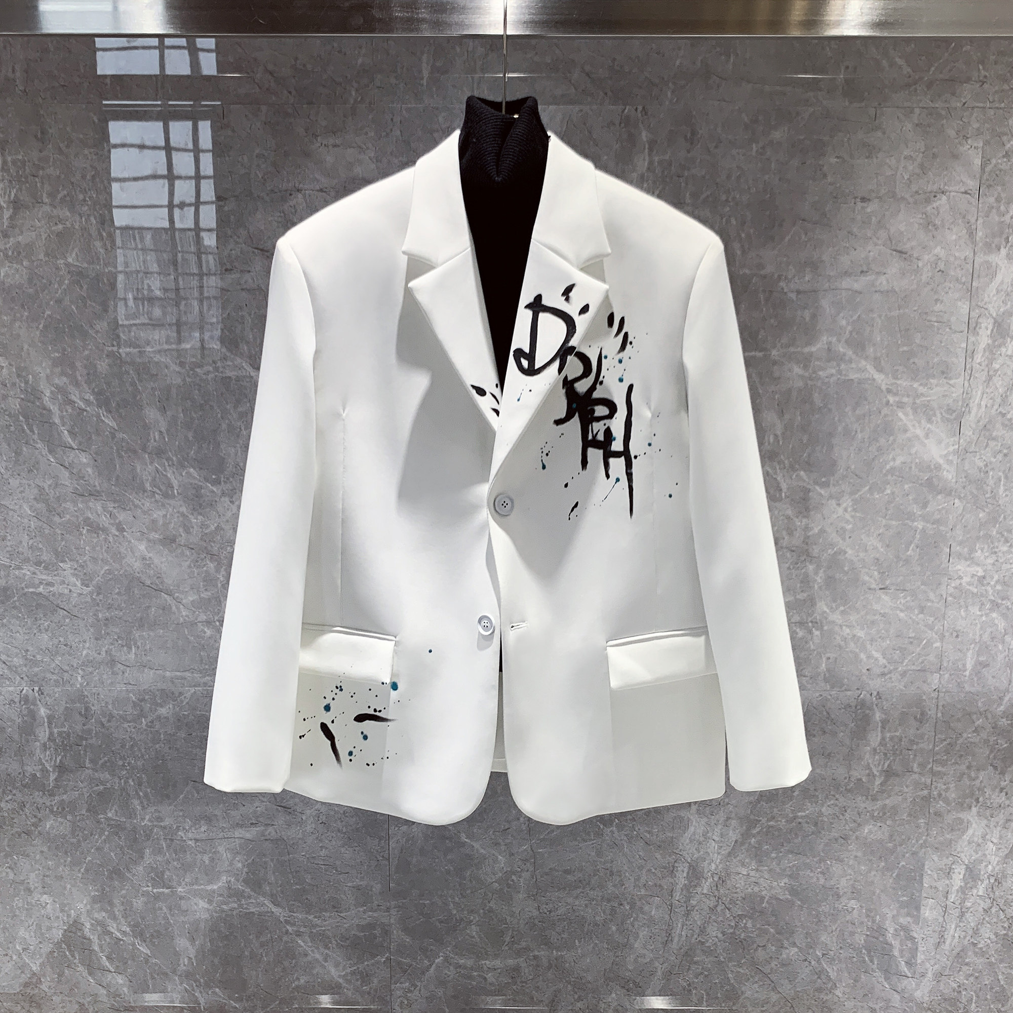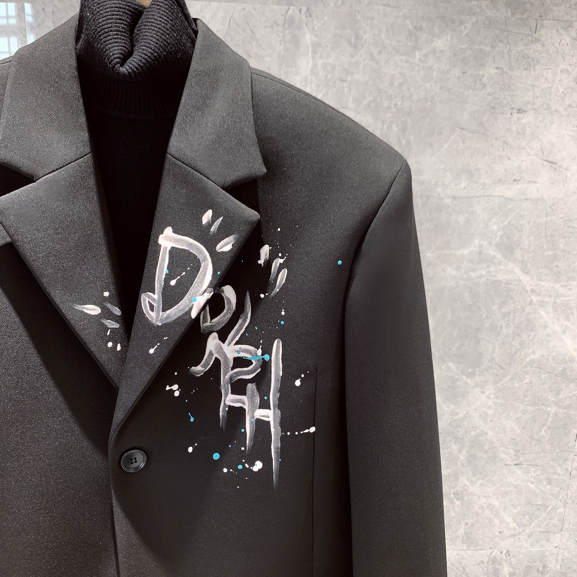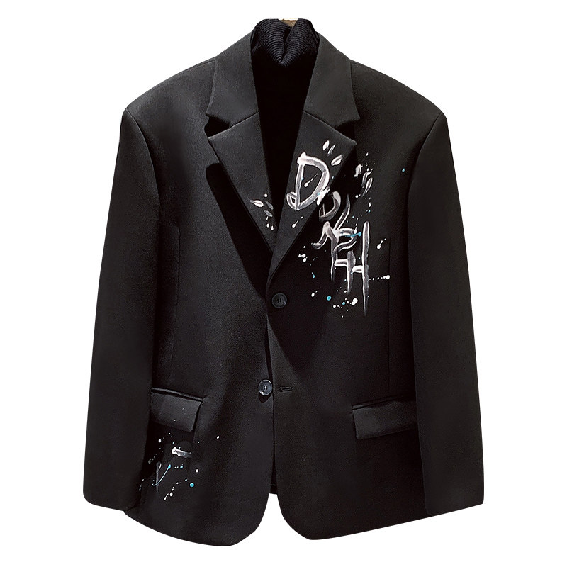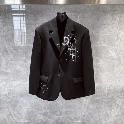 高级感冷淡系字母印花小西装外套男士韩版潮流痞帅休闲单西服上衣