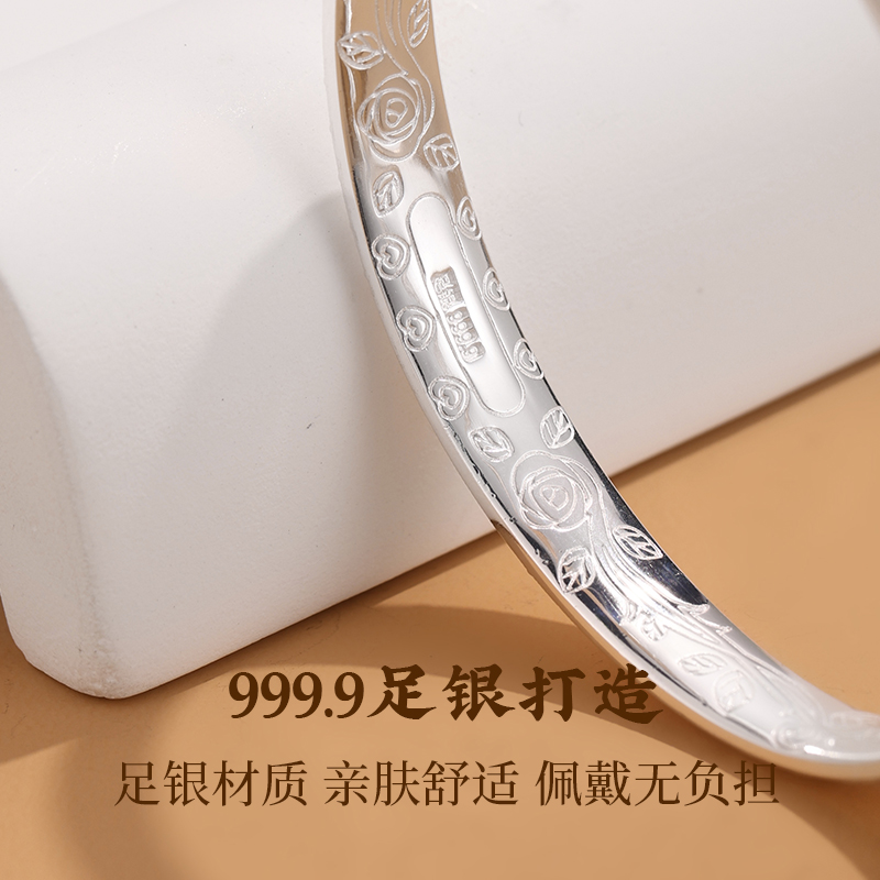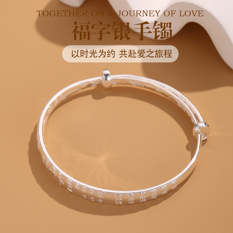 【志同珠宝】足银福字银手镯女推拉银镯 国风招财高级感百搭手饰