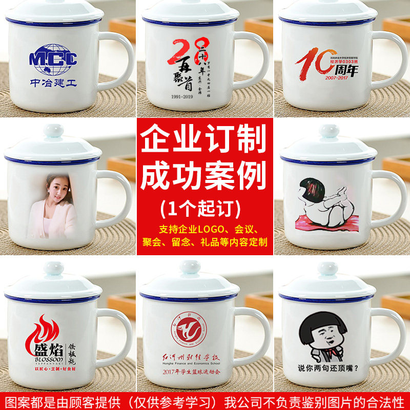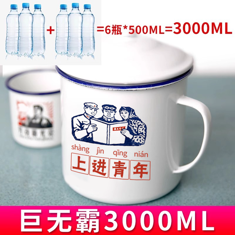 老式搪瓷杯茶缸大号怀旧经典带盖大容量水杯加厚复古搪瓷杯马克杯
