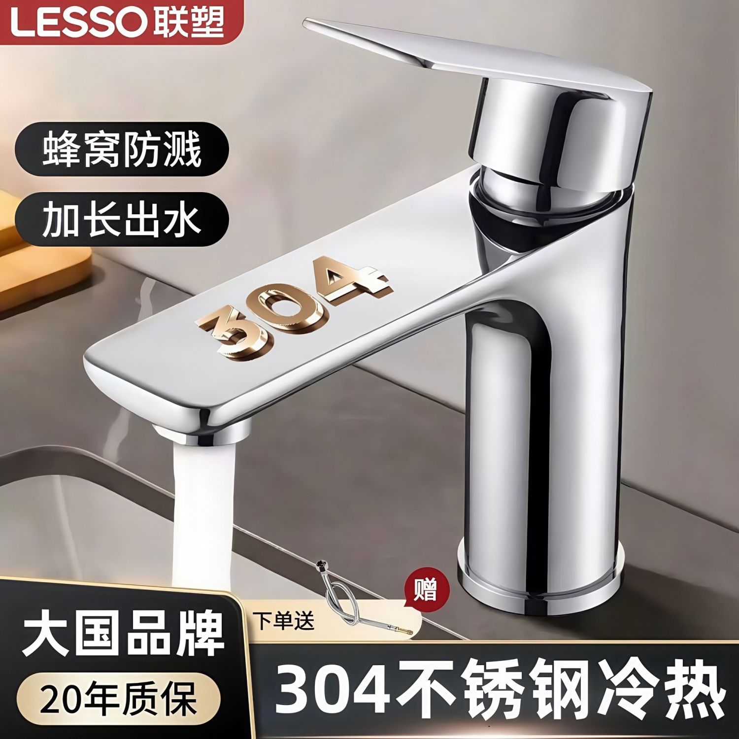联塑面盆厨房水龙头单冷不锈钢l冷热台盆洗脸盆卫生间浴室柜龙头