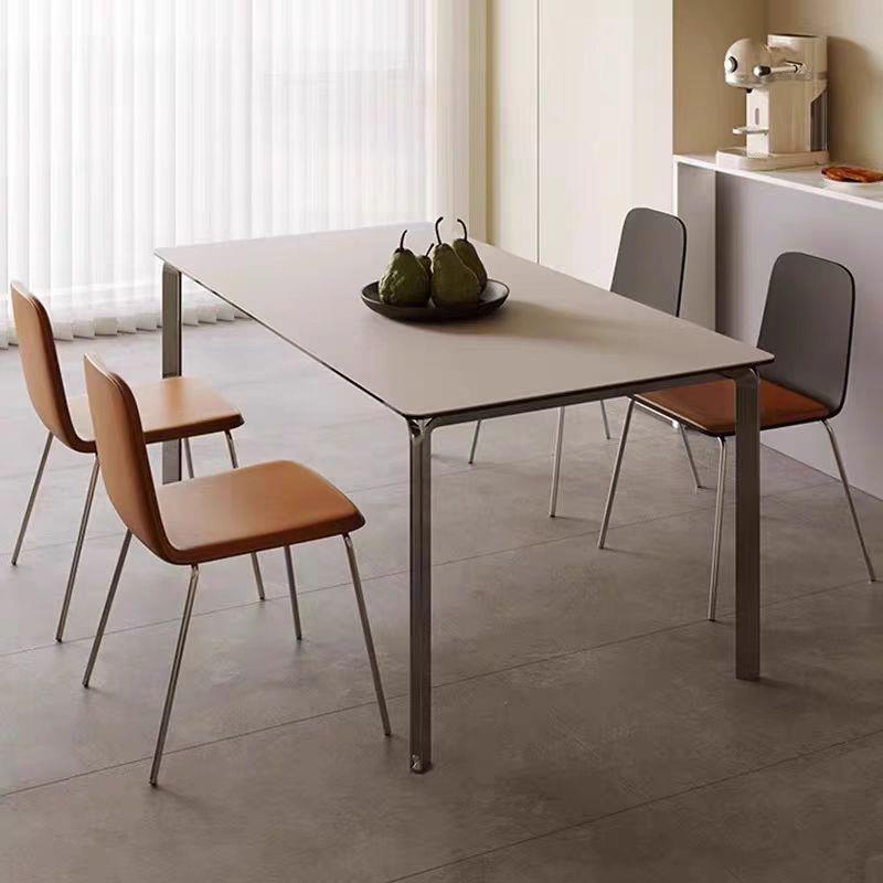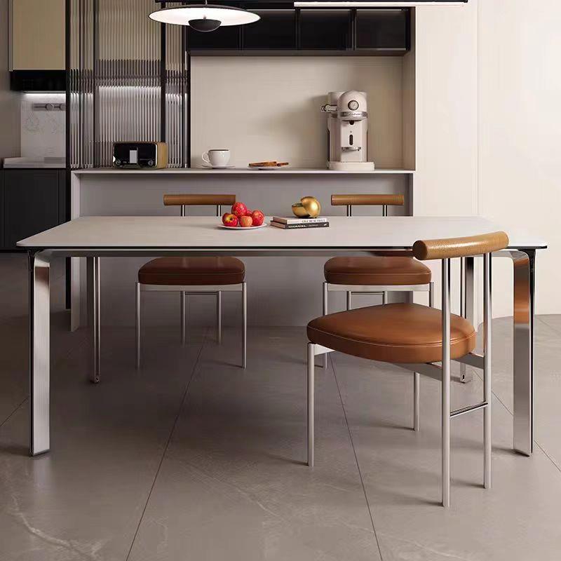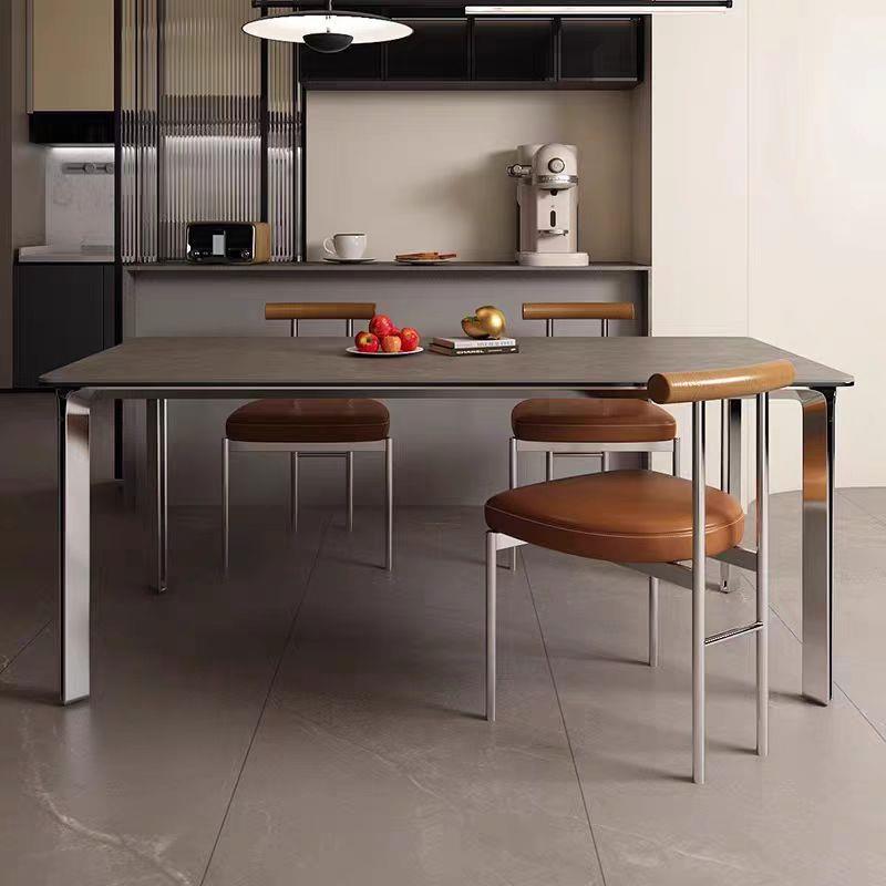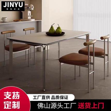 意式极简岩板餐桌家用小户型饭桌现代长方形设计师网红不锈钢餐桌