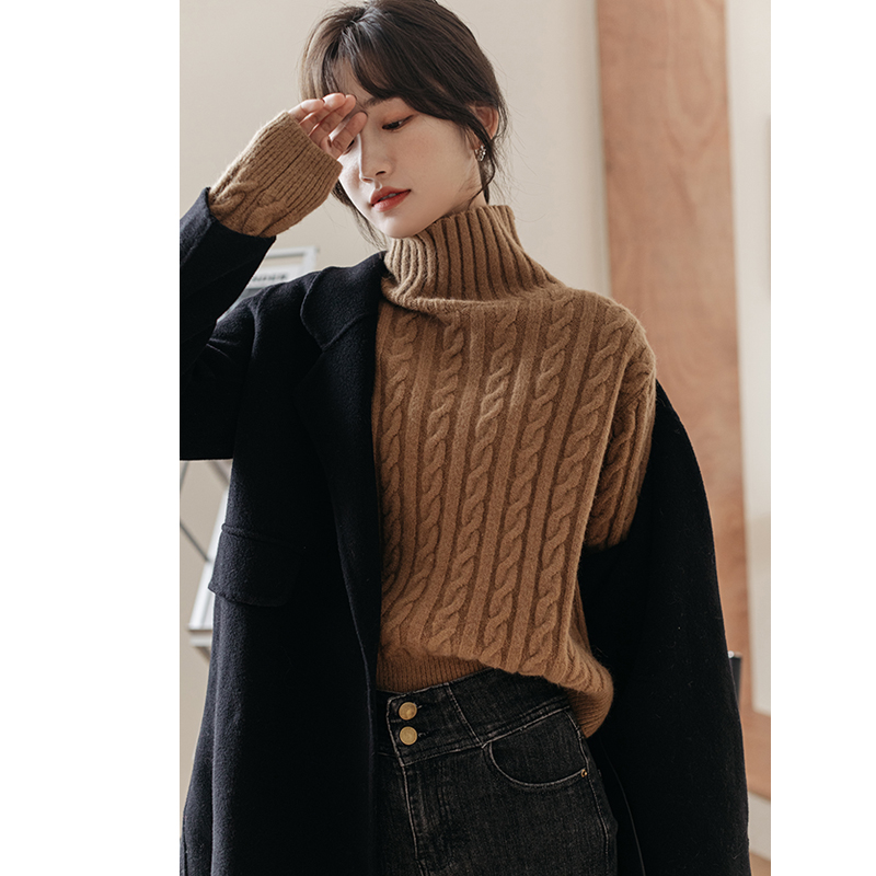 高领毛衣女2025年秋冬新款加厚宽松短款针织衫外穿内搭打底衫上衣